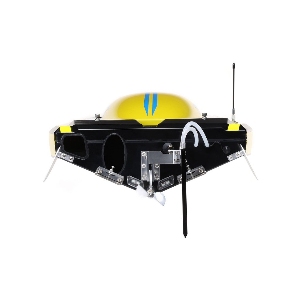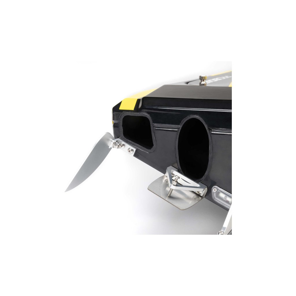 Jedním z nejrychlejších způsobů, jak ukončit odpolední zábavu s RC lodí, je náhodně narazit kormidlem do něčeho skrytého ve vodě. Super Sonicwake 48” eliminuje tyto starosti díky své konstrukci odlomitelného kormidla. Kormidlo se jednoduše otočí nahoru pokud narazí na pevný předmět, čímž se minimalizuje možnost poškození trupu nebo jeho součástí.