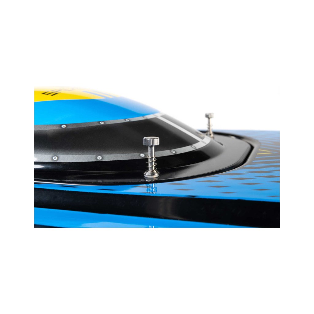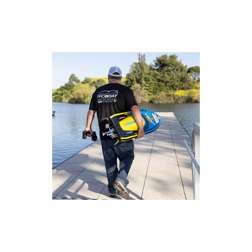 Pro Boat dosáhl několika vzrušujících prvenství s touto super velkou Deep-V lodí Super Sonicwake 48" ve verzi RTR, připravenou k provozu. Je to první člun své velikosti v historii RC, který má automatické otočení zpět při převrácení. Je to také první model Pro Boat, který má nainstalovaný vysoce výkonný střídavý napájecí systém Spektrum 8S, který je schopen dosáhnout rychlost 80km/hod! Nezávislé systémy vodního chlazení motoru a regulátoru udržují vaši těžce pracující elektroniku na bezpečných provozních teplotách. V závislosti na tom, jakou doporučenou LiPol baterii používáte, můžete jezdit maximální rychlostí nebo si naopak prodloužit dobu provozu. Inovativní systém instalace LiPol baterií Pro Boat SSL (Strap, Slide, Lock) vám umožní vyměnit sadu baterií během několika sekund.