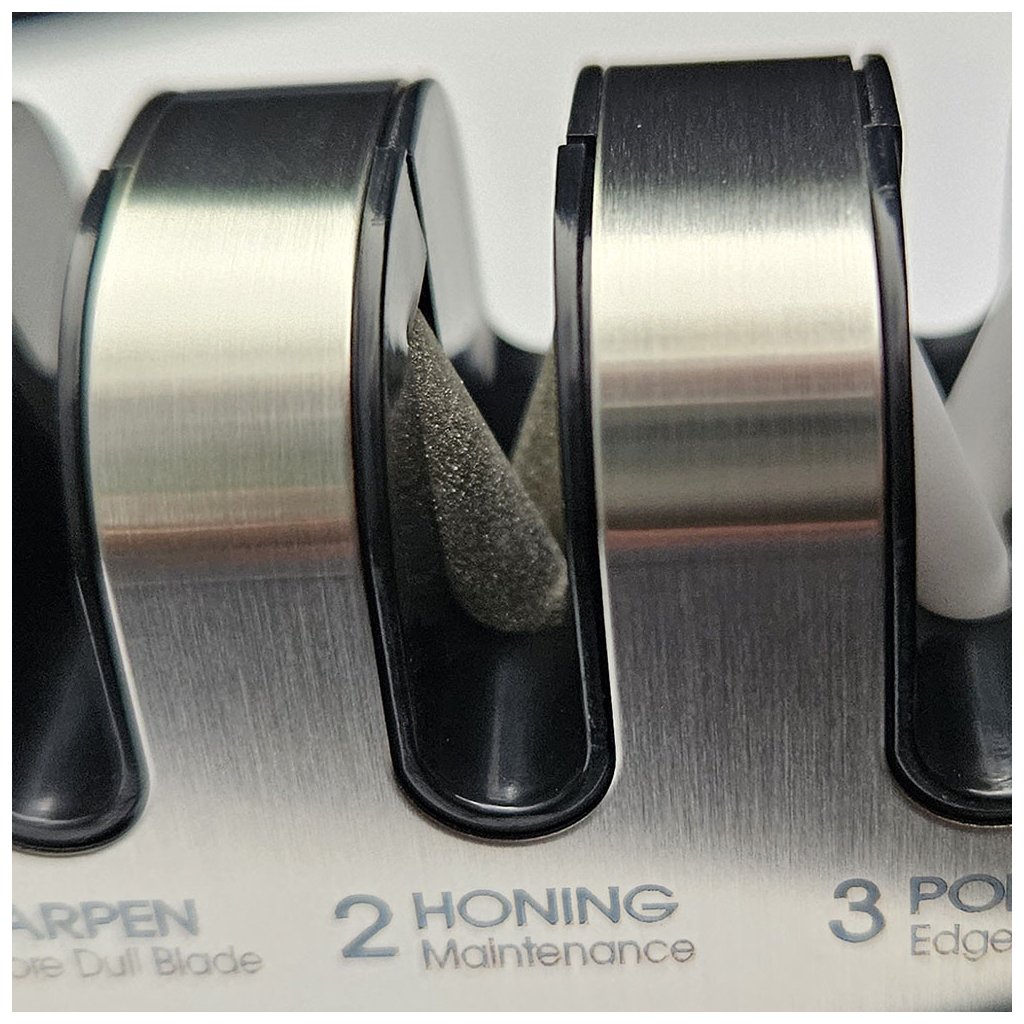 Nejprve je nutné zarovnat ostří, toto je důležité u hodně tupých nebo poškozených nožů, nůž vložte do ostřiče ve vodorovné poloze a v této poloze velkým přítlakem protáhněte 2x-3x ostřičem. Nyní můžete začít s broušením ostří, nůž protahujte od rukojeti nože ke špičce, špička nože musí směřovat dolů, na nůž tlačte pouze mírně, opakujte 4x-8x. Poslední krok broušení je dobroušení ostří, doleštění břitu, nyní zvolte opačný postup, kdy špička nože směřuje vzhůru a velmi malým přítlakem nůž protáhněte ostřičem 3x-5x. Pokud tento krok budete v kuchyni používat co nejvíce, budou vaše nože neustále ostré. Po broušení nezapomeňte nůž i ostřič důkladně opláchnout vodou.