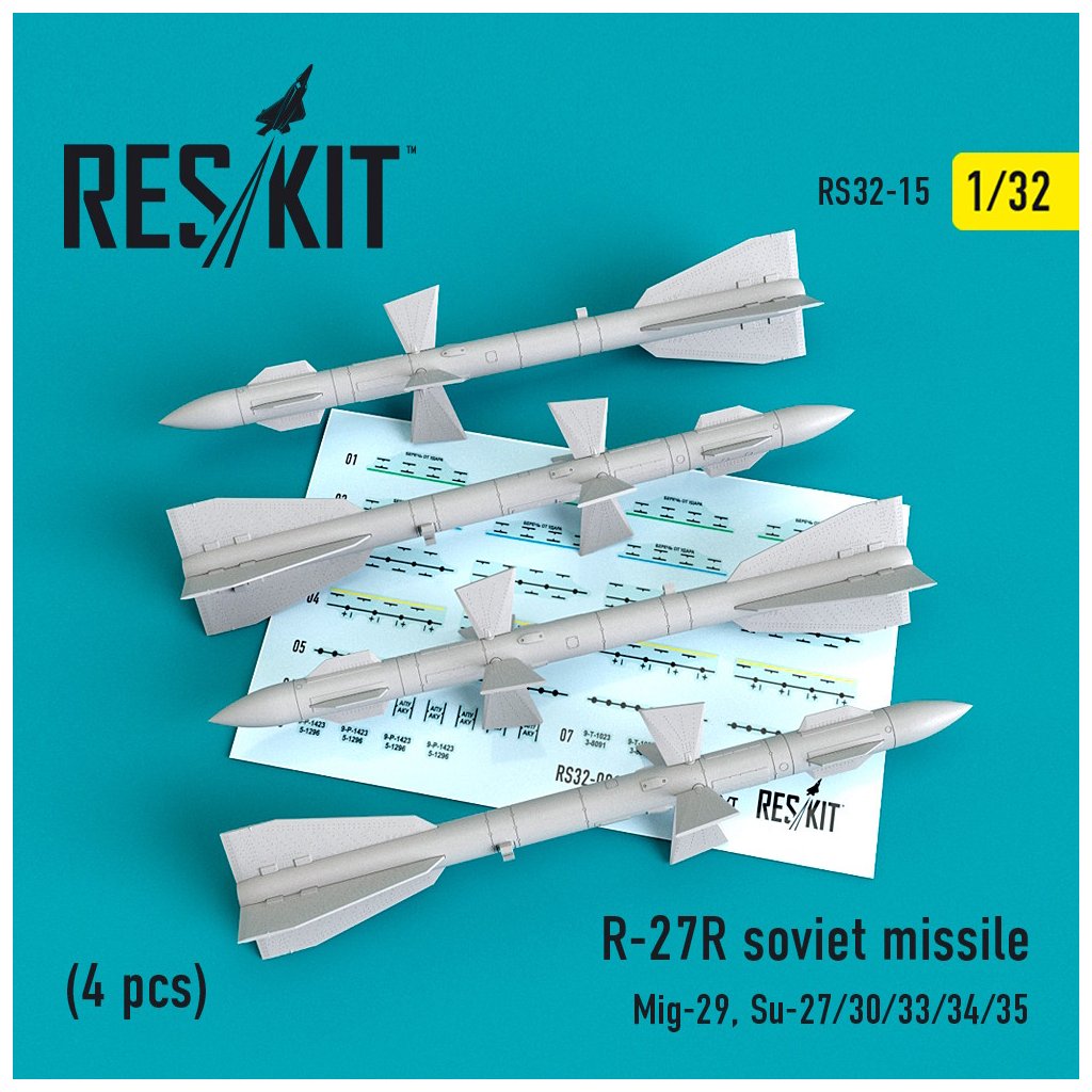 R-27R soviet missiles (4 pcs) (MiG-29, Su-27/30/33/34/35) (1/32)