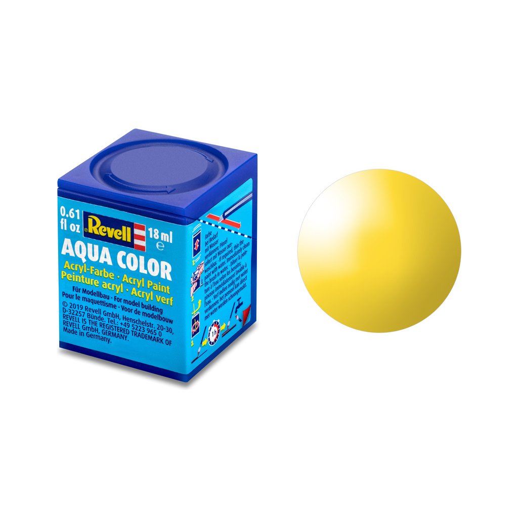 Akrylová barva Revell 36112 pro použití v modelářství. Odstín číslo 12 – žlutá lesklá. Obsah 18 ml.