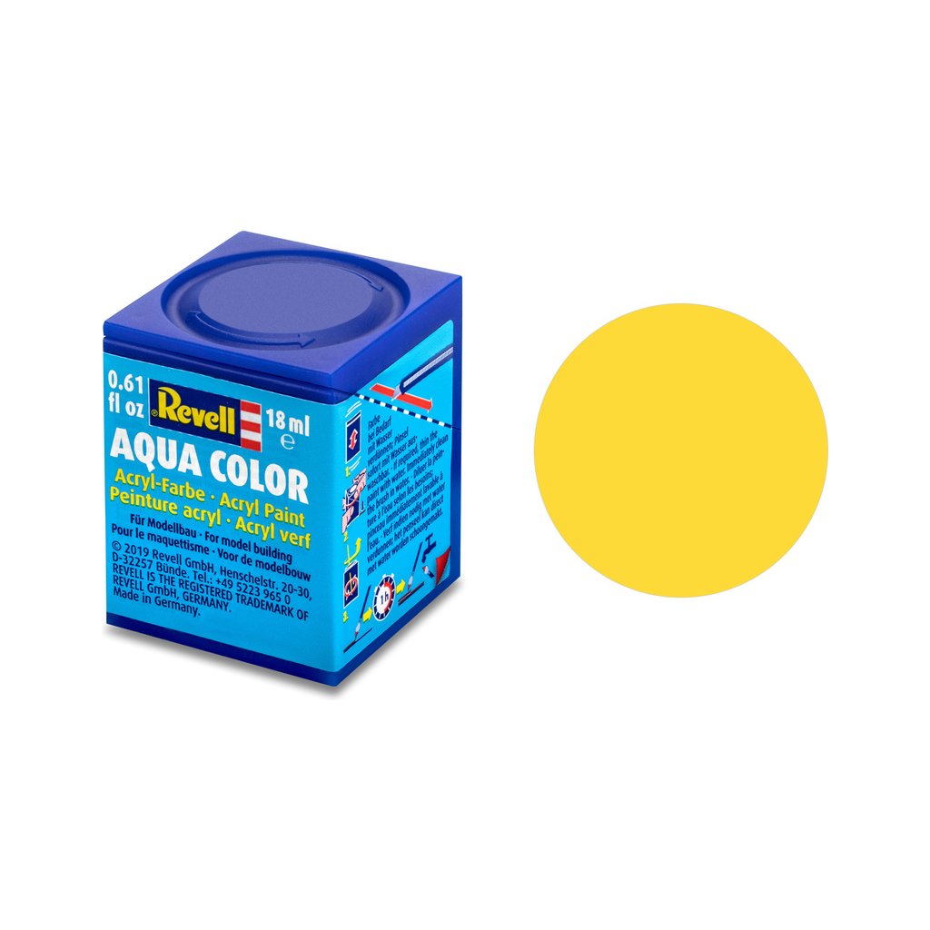 Akrylová barva Revell 36115 pro použití v modelářství. Odstín číslo 15 – žlutá matná. Obsah 18 ml.