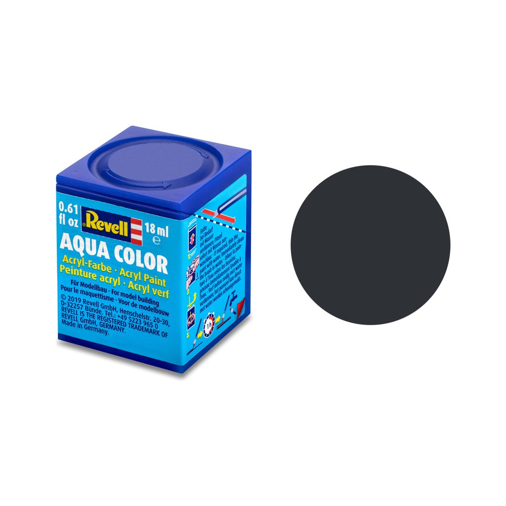 Akrylová barva Revell 36109 pro použití v modelářství. Odstín číslo 9 – antracitová šedá matná. Obsah 18 ml.