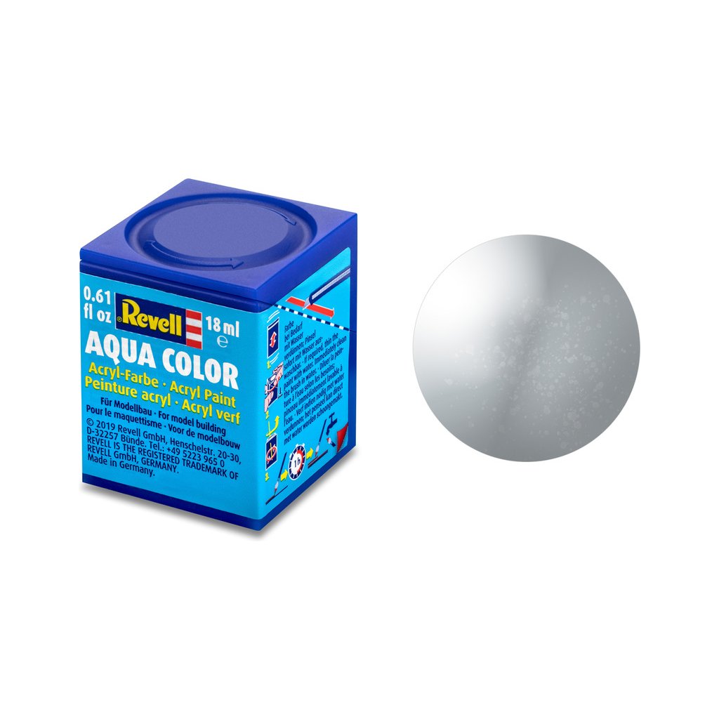 Akrylová barva Revell 36190 pro použití v modelářství. Odstín číslo 90 – stříbrná metalická. Obsah 18 ml.