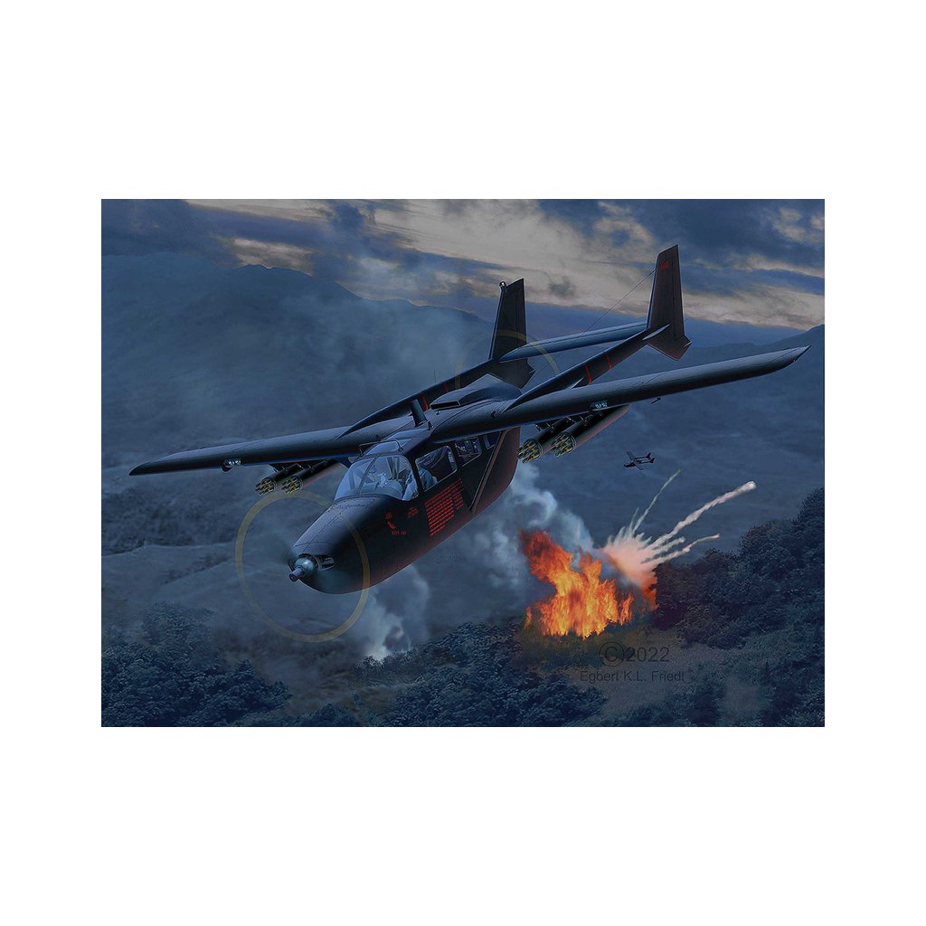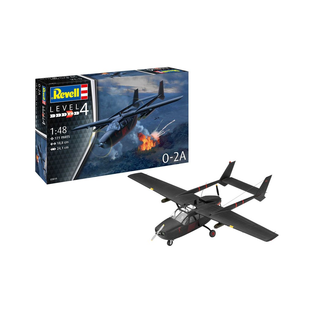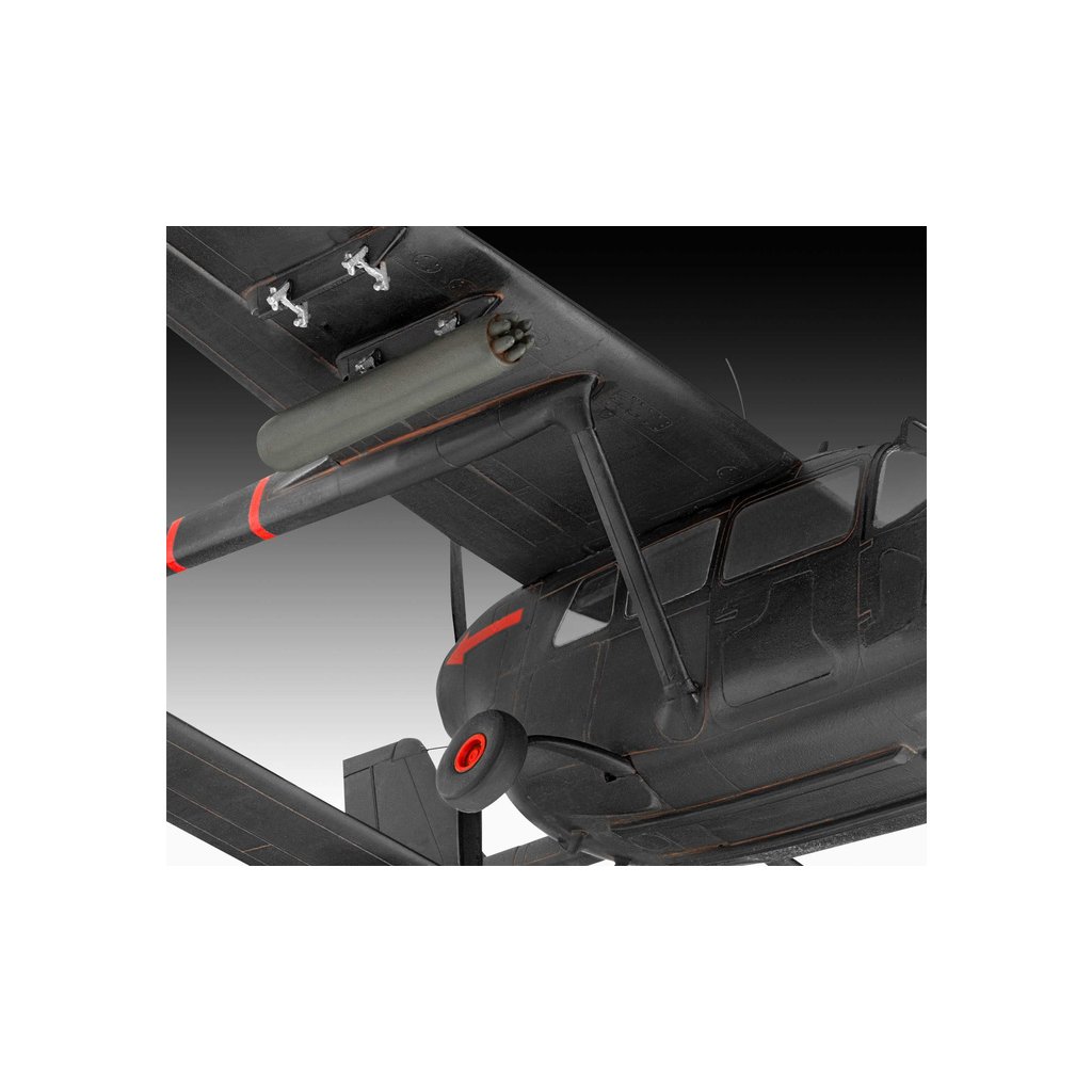 Plastikový model Revell 63819 – letadlo Cessna O-2A Skymaster v měřítku 1:48 ke slepení. Stavebnice obsahuje 171 dílků, rozpětí křídel 241 mm, obtížnost 4.