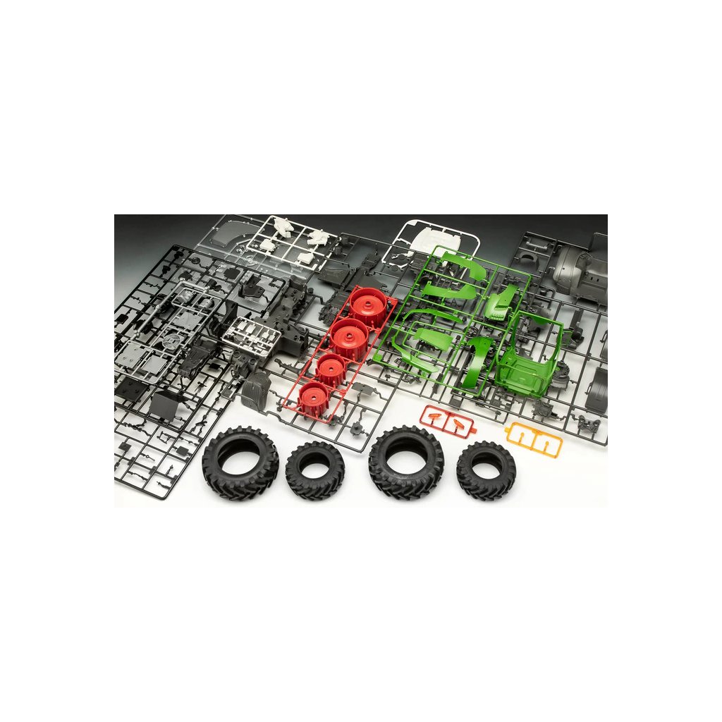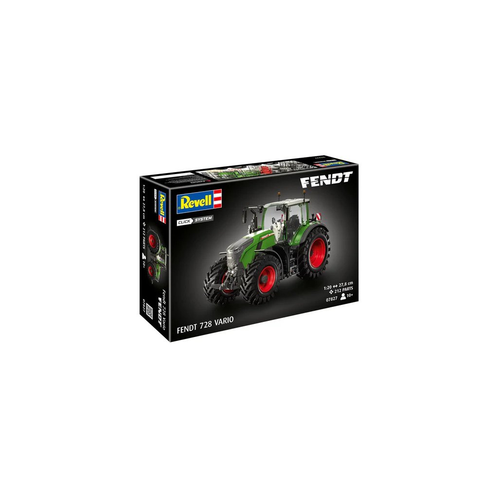 Plastikový model Revell 07827 - traktor Fendt 728 Vario v měřítku 1:20 k sestavení. Stavebnice obsahuje 212 dílků, obtížnost 2.