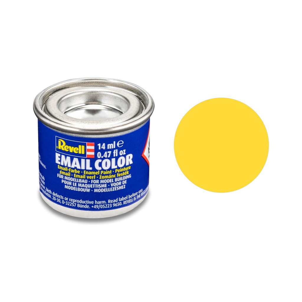 Syntetická (emailová) barva Revell 32115 pro použití v modelářství. Odstín číslo 15 – žlutá matná. Obsah 14 ml.