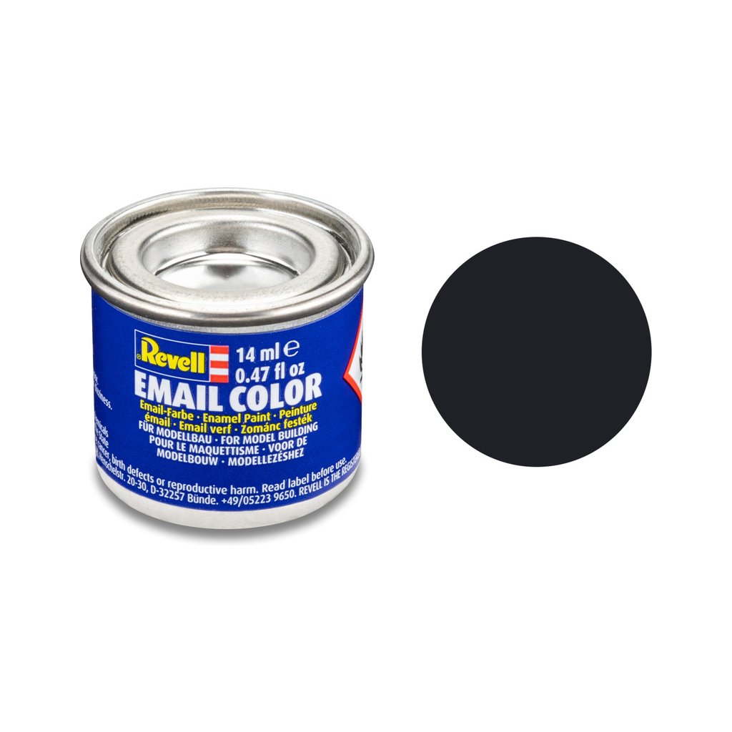 Syntetická (emailová) barva Revell 32108 pro použití v modelářství. Odstín číslo 8 – černá matná. Obsah 14 ml.
