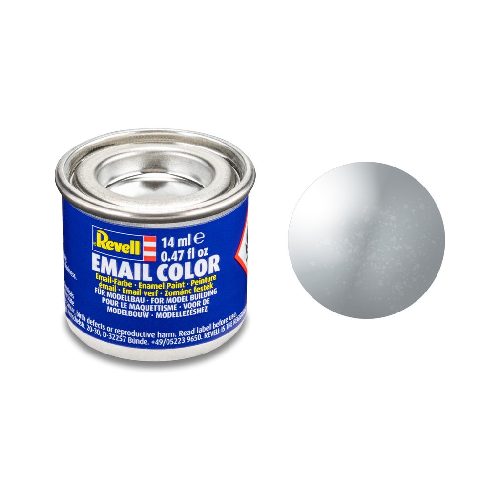 Syntetická (emailová) barva Revell 32190 pro použití v modelářství. Odstín číslo 90 – stříbrná metalická. Obsah 14 ml.