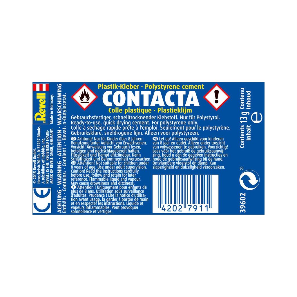 Revell Contacta Glue 39602 je gelové lepidlo v tubě určené pro lepení plastikových modelů. Pracovní čas je asi 1 – 2 minuty. To je výhodné pro lepení velkých dílů, kde je potřeba mít dostatek času na nanesení lepidla a zafixování dílů.
