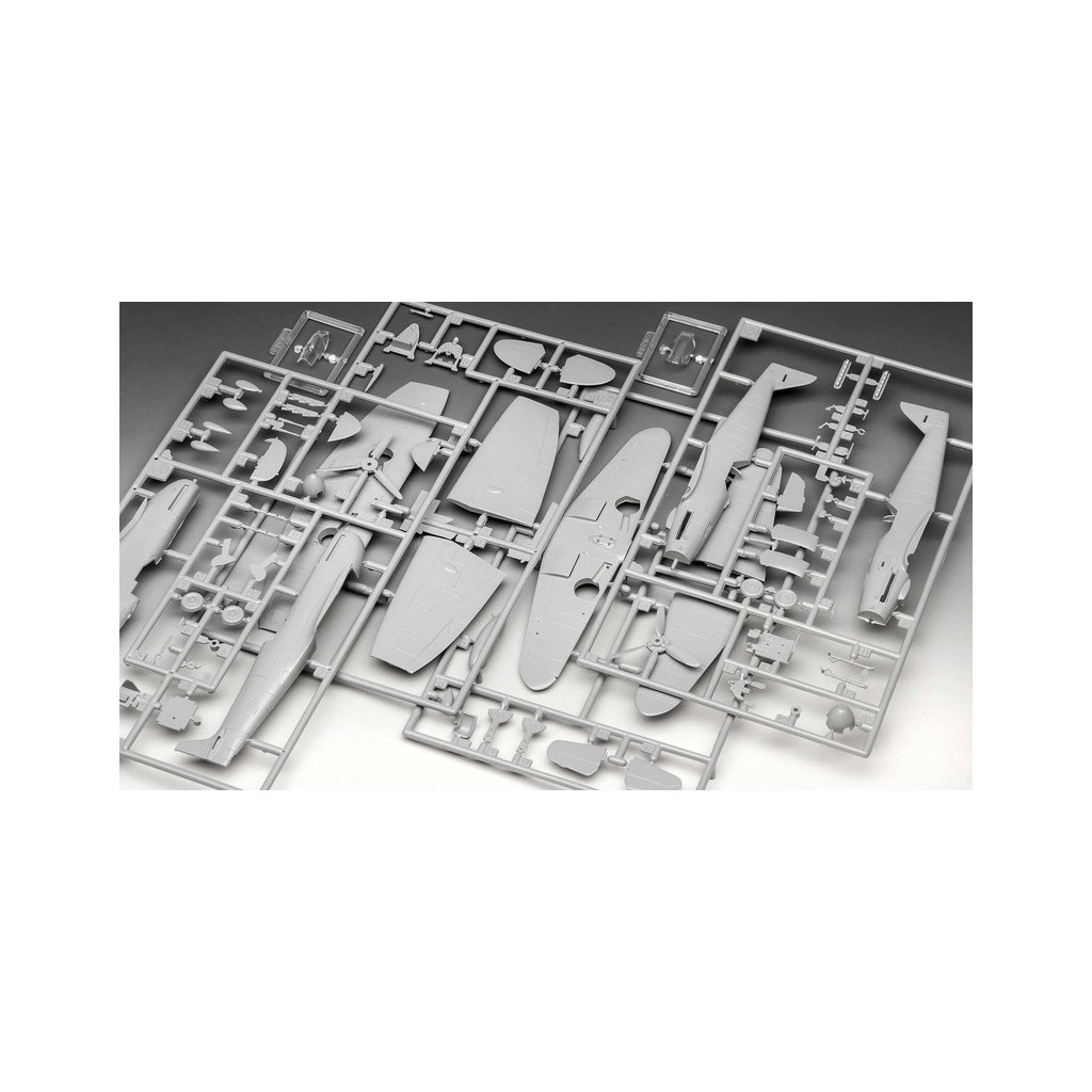 Plastikový model Revell 03710 - letadlo Messerschmitt Bf 109G-10, Spitfire Mk.V v měřítku 1:72 ke slepení. Stavebnice obsahuje 76 dílků, rozpětí křídel 140 a 138 mm, obtížnost 3.