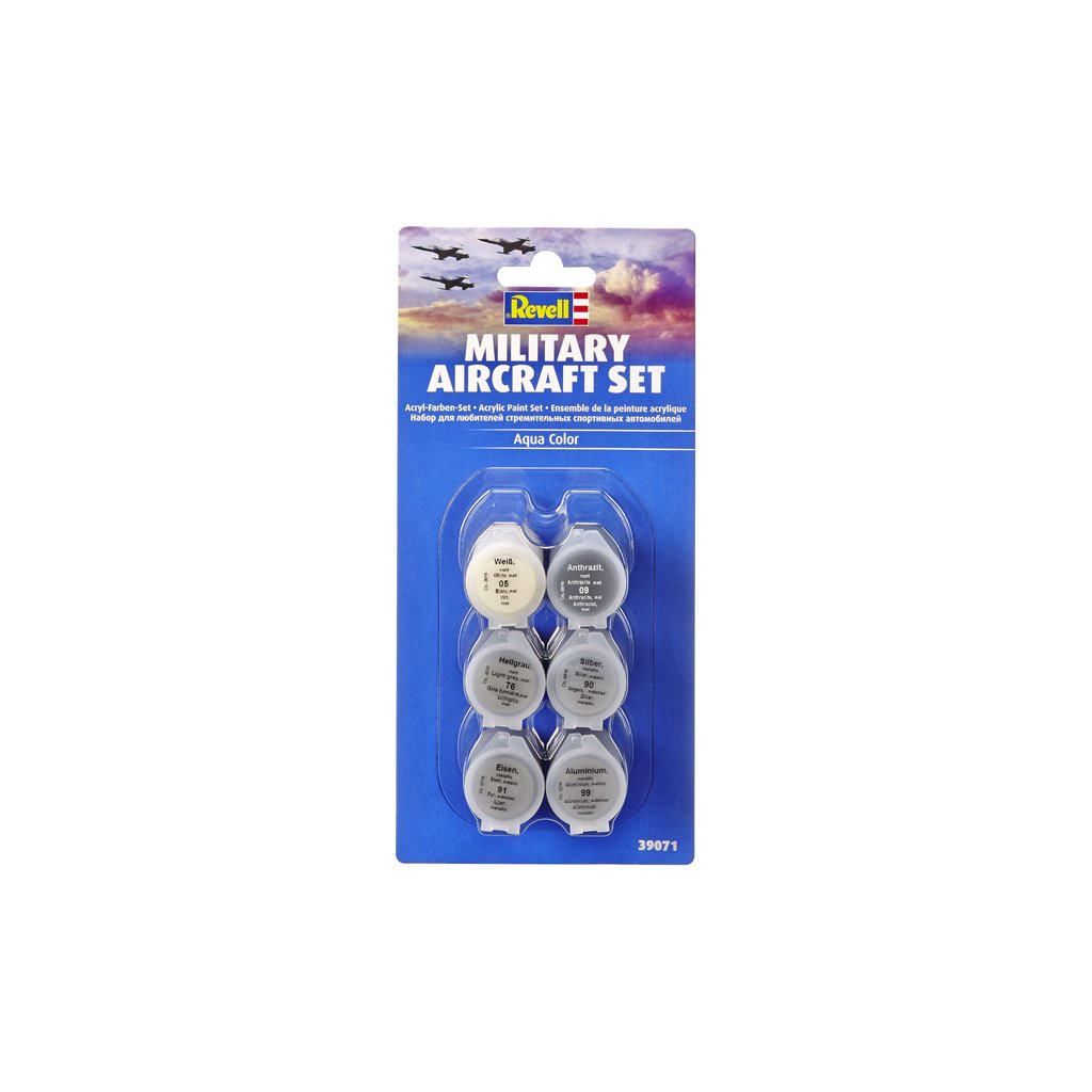 Sada šesti akrylových barev pro modeláře Revell 39071 Aqua Color nejčastěji používaných na vojenských letounech. Barvy jsou po 5 ml!