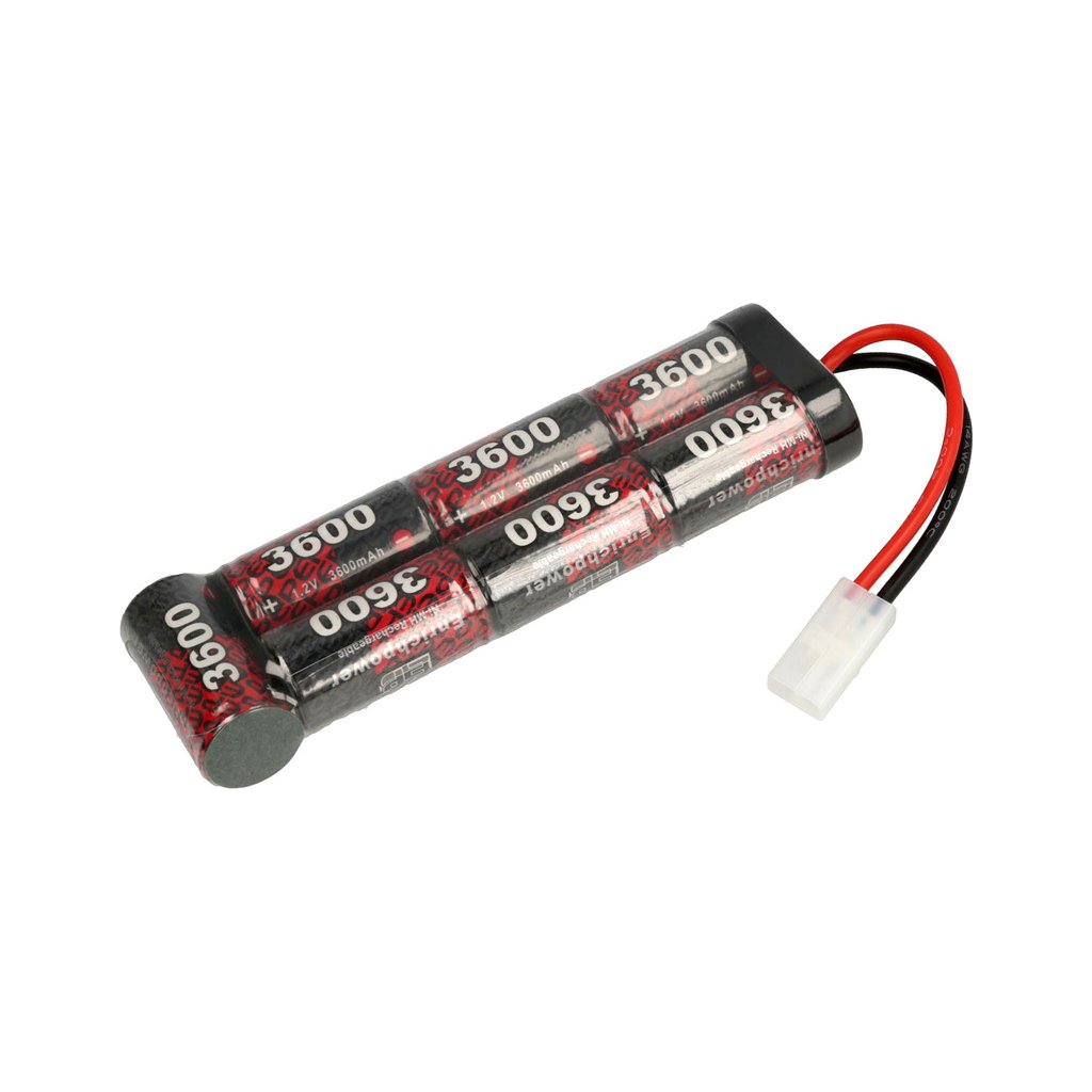 Kvalitní pohonný 7-článkový akumulátor Robitronic NiMH 8,4 V s kapacitou 3600 mAh a konektorem Tamiya. Rozměry 158 x 47 x 24 mm. Délka kabelu 9 cm.