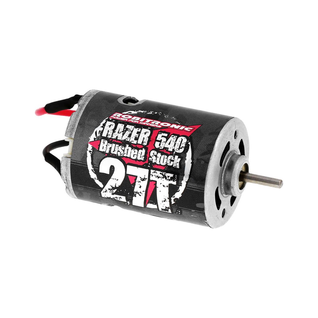 Stejnosměrný motor Robitronic Razer řady 540 s 27 závity na kotvě. Kluzné bronzové ložiska, rotor má 3 vinutí, chlazení je zajištěno vnitřním ventilátorem. Rozměry ø36x54 mm, průměr hřídele je 3.17 mm (1/8").