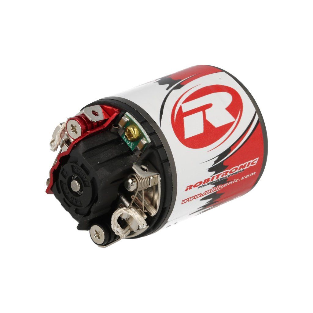 Precizní stejnosměrný motor Robitronic Rock Crawler řady 540 s 80 závity vhodný pro RC modely i průmyslové aplikace. Motor je rozebíratelný, má precizní kuličkové ložiska, velmi tichý chod s minimem vibrací. Díky velmi malé mezeře mezi statorem a rotorem má motor velký kroutící moment. Kartáče jsou ze směsi stříbra a uhlíku.