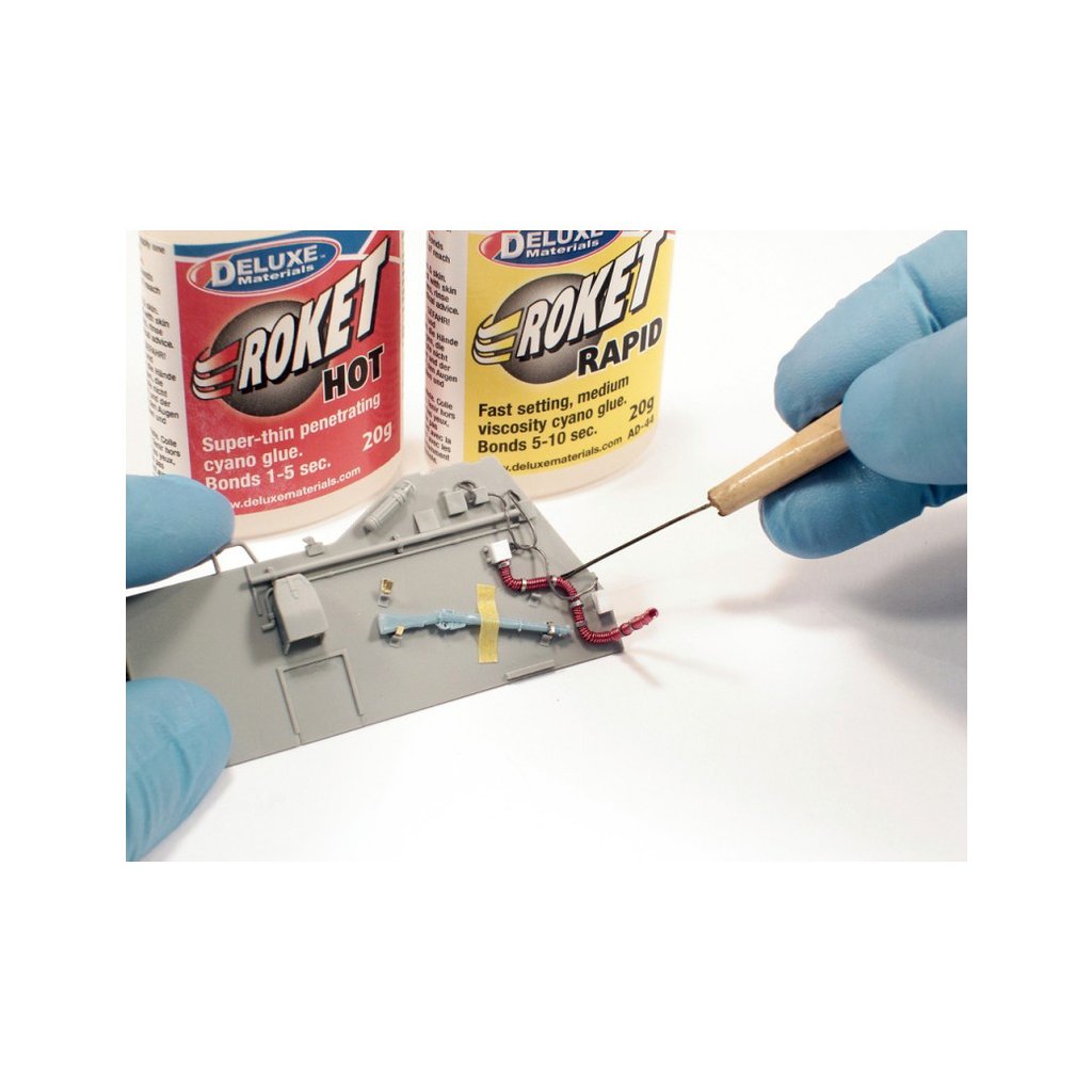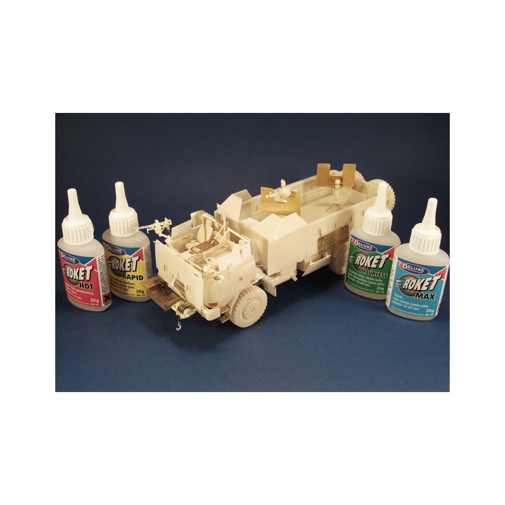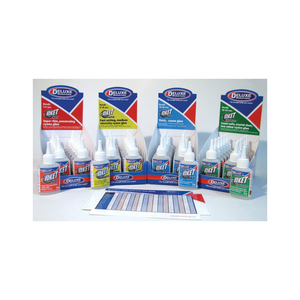 Roket Odourless je kyanokrylátové lepidlo střední konzistence, které lepí bez zápachu. Lepí o 2 až 3 sekundy později, než standardní kyanokrylátová lepidla. Roket Odourless nenapadá pěnové hmoty (polystyren, depron, polypropylen, atd.), proto se výborně lepení těchto hmot s kombinací se dřevem. Spoj je hotový za méně než patnáct sekund.