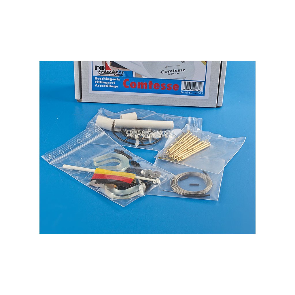 ROMARIN Comtesse - sada příslušenství obsahuje kování, svítilny, kolo kormidla, díly pro sloupek řízení, navijáky, sloupky a další.