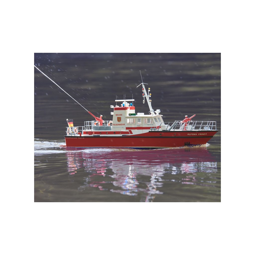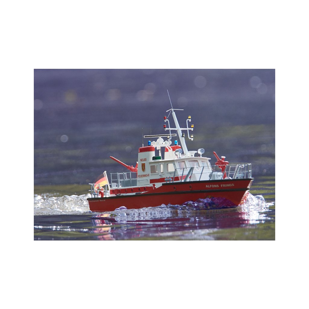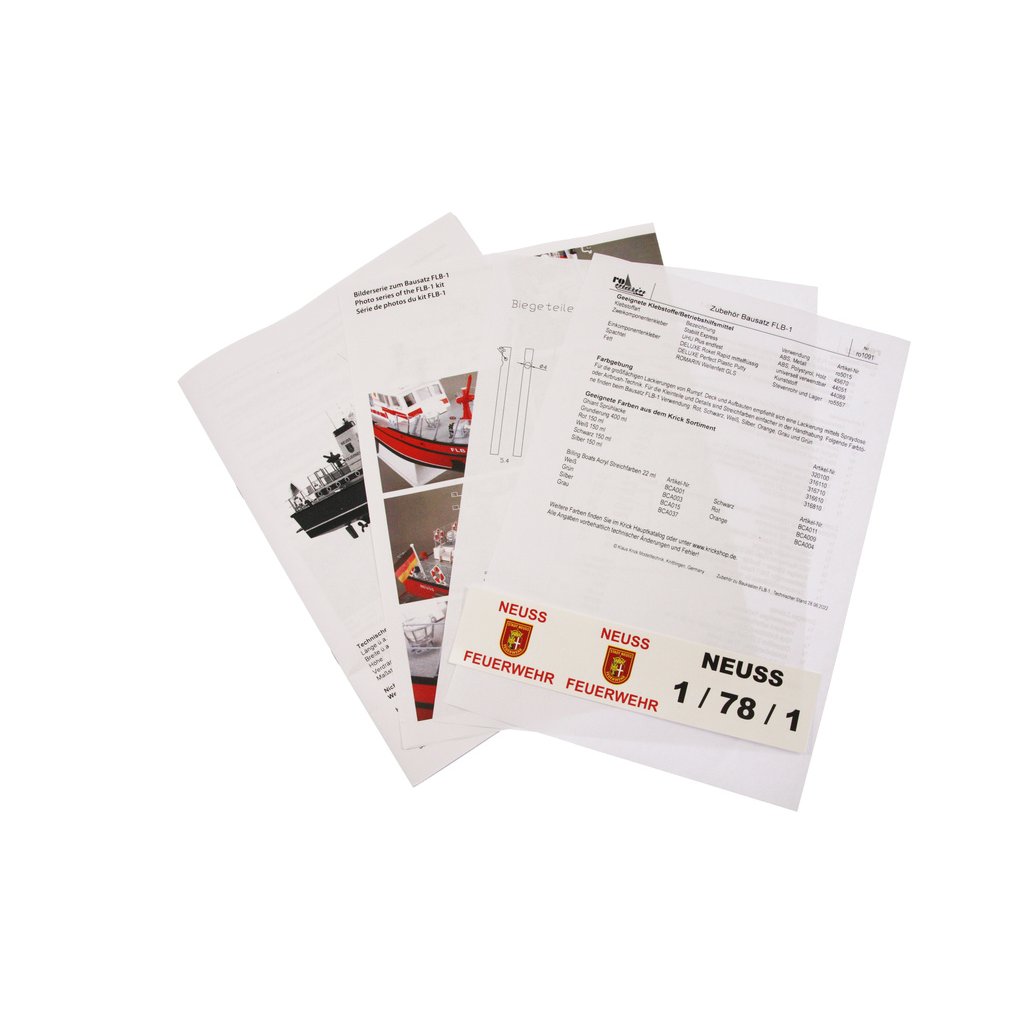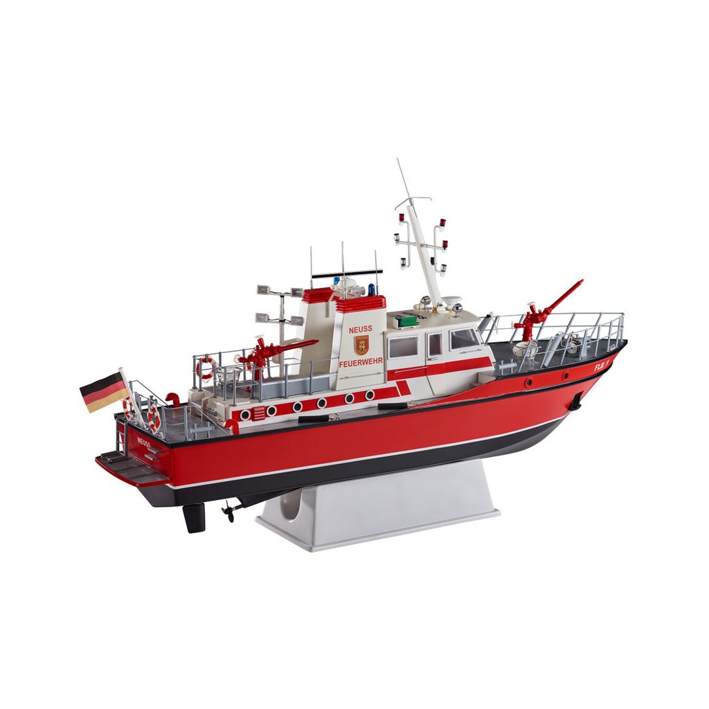 Stavebnice RC modelu lodi na dálkové ovládání od firmy ROMARIN, hasičská loď FLB-1 kit. Vzorem loď FLB-1 na řece Rýn, pro účely požární a záchranné služby. Obsahuje plastové díly trupu a paluby a interiéru, dřevěné součásti, výkres, lodní šroub, maketové díly a drobné stavební příslušenství.