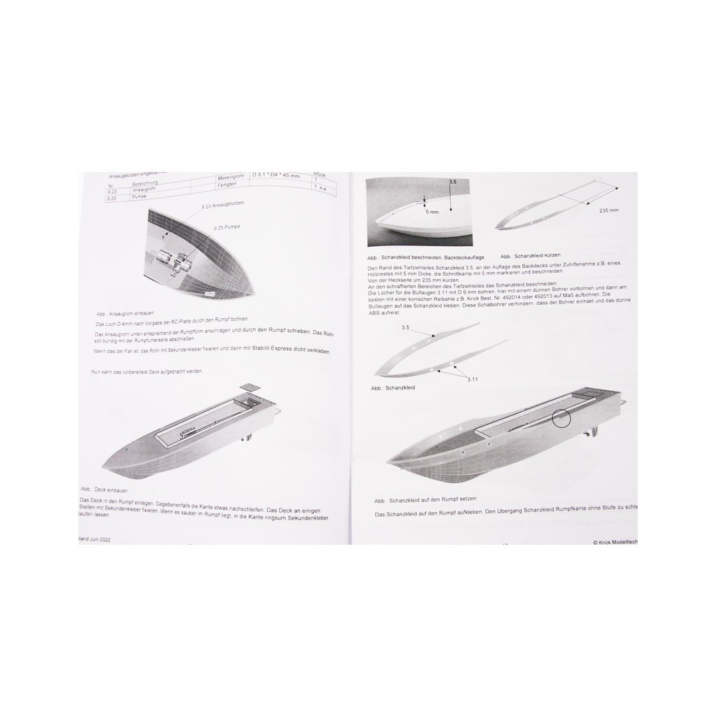 Pokud chcete loď sestavit jako plovoucí RC model, je nutné již během stavby přizpůsobit interiér lodi a zvolit rozmístění jednotlivých součástí elektroniky a pohonu. Doplnit je třeba motor, regulátor, servo, RC soupravu, akumulátor, nabíječ a další příslušenství.