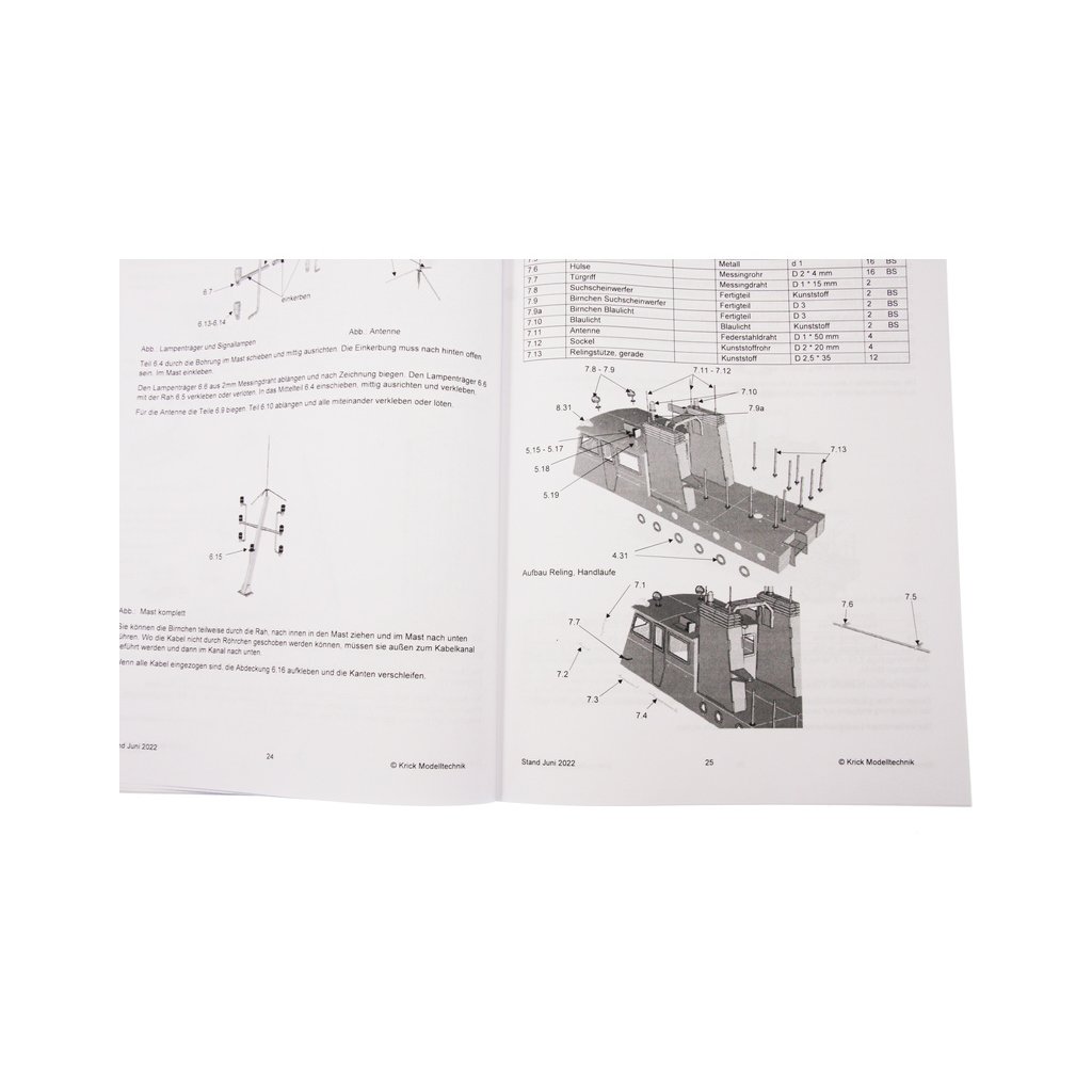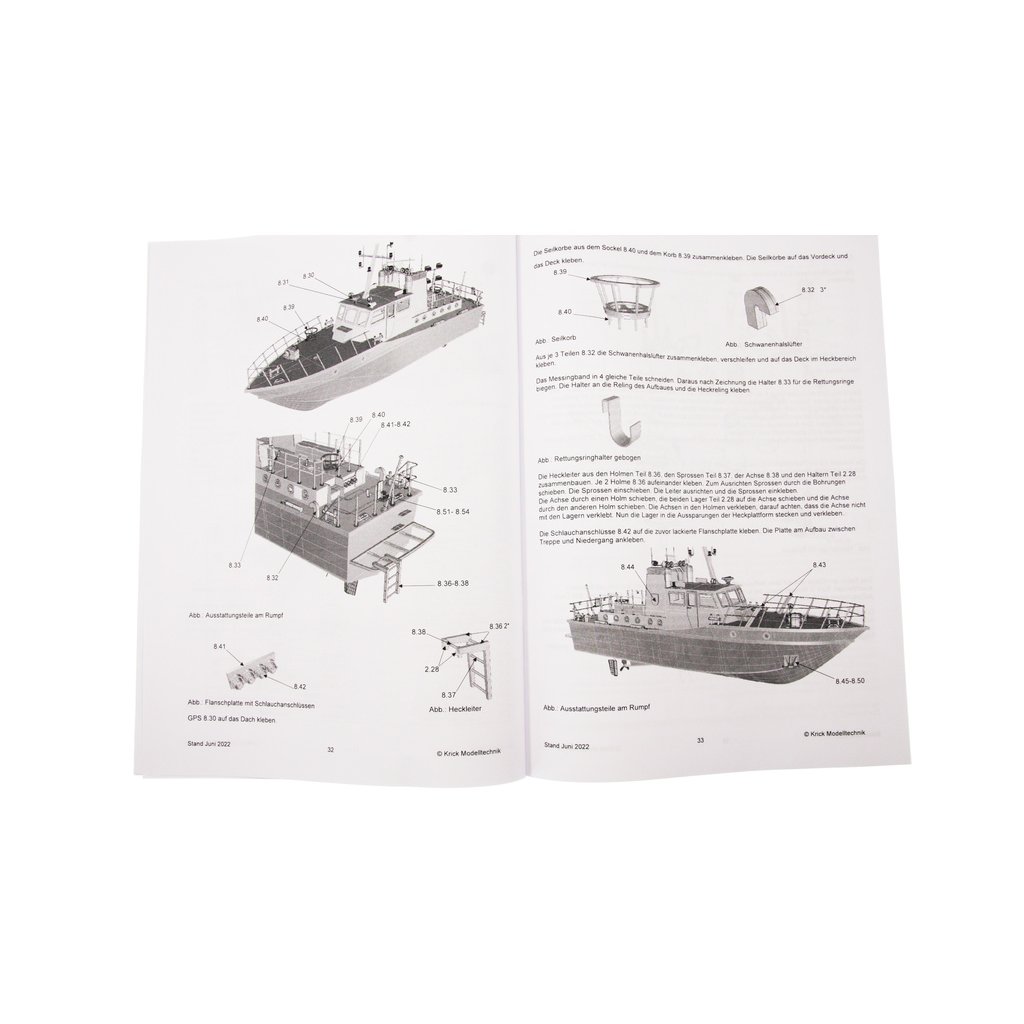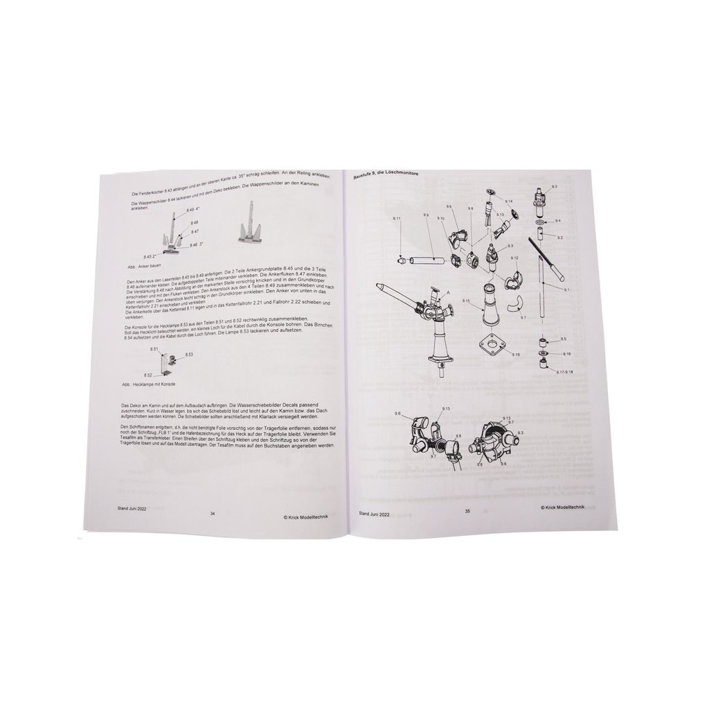 Set obsahuje podrobný manuál s postupem stavby a obrázky jednotlivých detailů. Na výkrese jsou nakresleny montážní sestavy, jejich kompletace a to včetně montáže příslušenství. Vícejazyčný postup stavby rámcově upravuje logické sestavení jednotlivých komponentů.