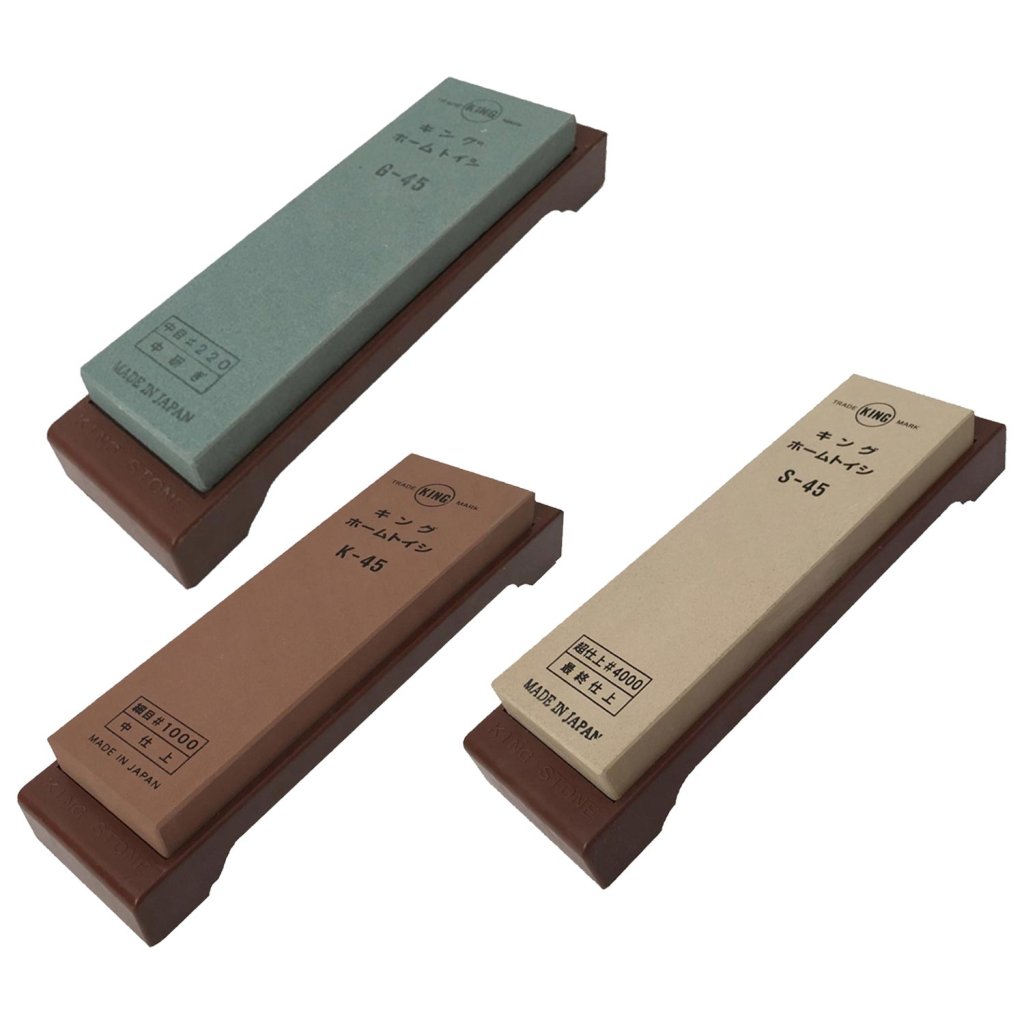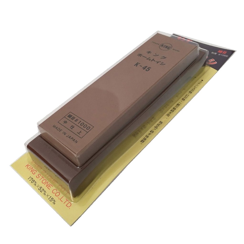 Brusné kameny KING jsou vyrobeny z vysoce kvalitního (korundu) oxidu hlinitého. Tento materiál je extrémně trvanlivý a ostří na maximální možné úrovni. Všestrannost tohoto brusného kamene můžete vyzkoušet nejen na nožích, ale můžete nabrousit nůžky, sekery, břitvy, dláta, kapesní a lovecké nože. Syntetické brusné kameny jsou obecně vyrobeny z oxidu hlinitého. Jedná se o stejný brusný materiál používaný v olejových brusných kamenech. Rozdíl mezi nimi je však pojivo, které drží brusivo ve vodním kameni pohromadě. Vodní brusné kameny jsou měkčí než olejové brusné kameny, což umožňuje rychlejší broušení. Při broušení se starý abrazivní materiál odlomí a je nahrazen čerstvým ostrým materiálem. Rychlejší broušení je jednoznačně výhodou vodního brusného kamene. Další zjevnou výhodou je použití vody spíše než oleje k odstranění kovových třísek z brusného kamene. Vodní brusný kámen však není dokonalý. Měkkost brusného kamene, která podporuje rychlejší broušení má za následek rychlejší opotřebení. Opotřebení je také nerovnoměrné a vyžaduje časté rovnání brusné plochy. K tomu slouží srovnávací bloky, které naleznete v sekci příslušenství pro broušení.