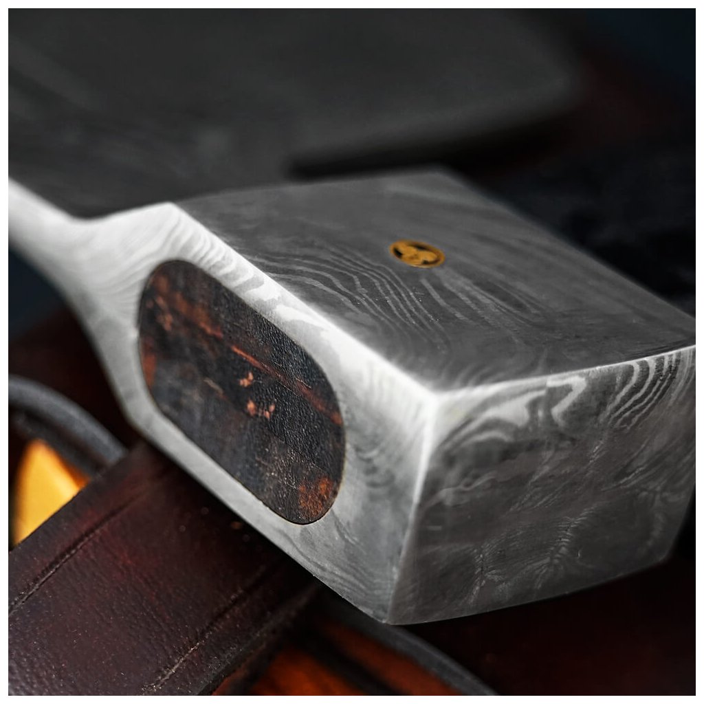 Damašková uhlíková ocel není nerezová, proto vykazuje citlivost na oxidaci. Pravidelná údržba, včetně důkladného osušení a olejování, minimalizuje riziko koroze. Tvrdost sekery se pohybuje v rozmezí 55-60 HRC. Součástí balení je kožené pouzdro pro bezpečné přenášení při vašich výpravách do divočiny. Topůrko z ušlechtilého palisandru (SISSO Wood) s poctivou koženou omotávkou zajišťuje luxusní vzhled a pevný úchop. Tato praktická sekera usnadňuje širokou škálu pracovních úkolů v tábořišti i v lese.