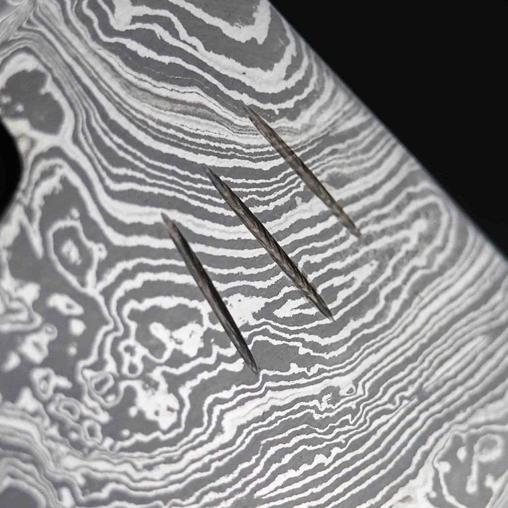 Upozornění Každý kus je ručně kovaný originál. Vzor damaškové oceli i textura dřeva palisandru jsou jedinečné a mohou se mírně lišit od fotografie. |