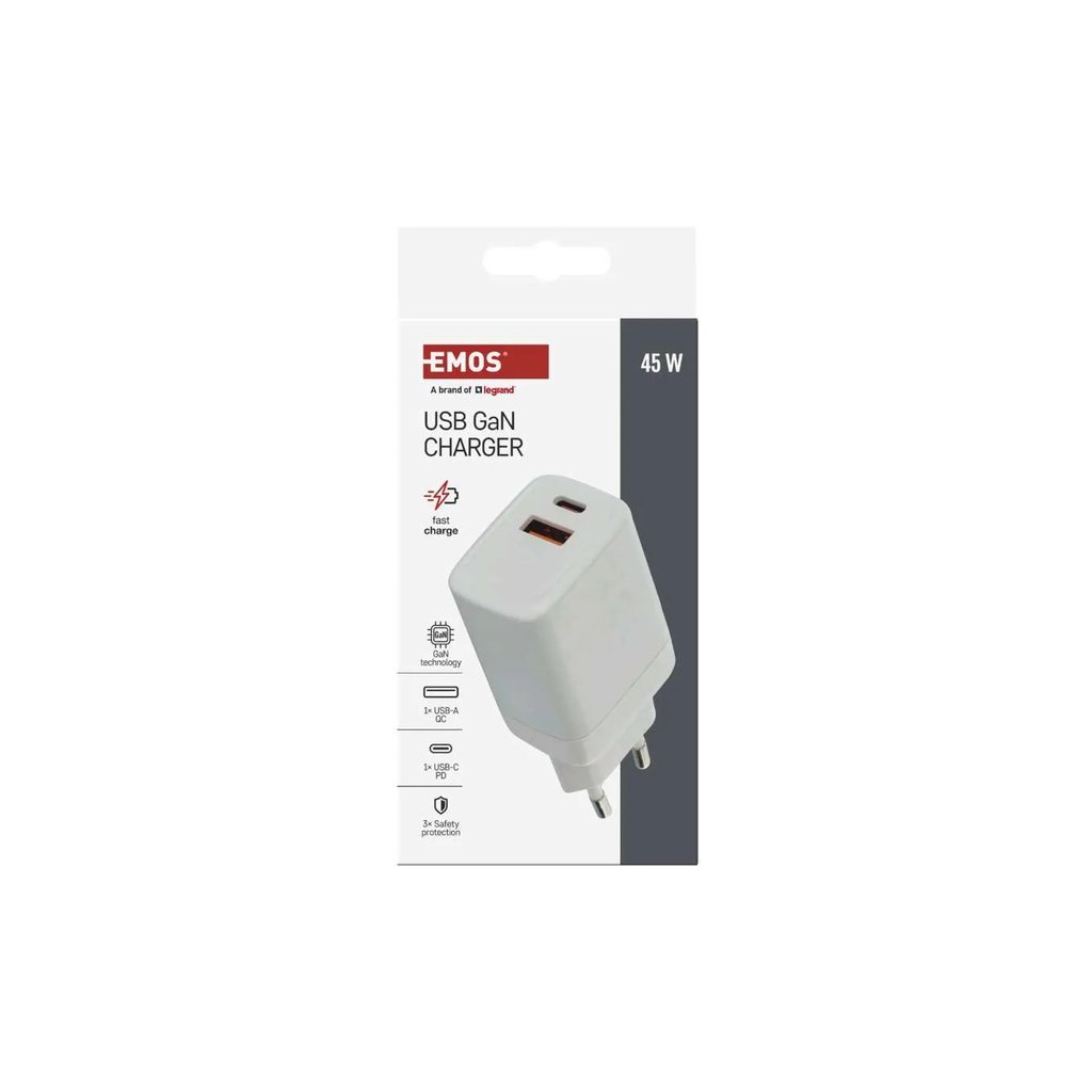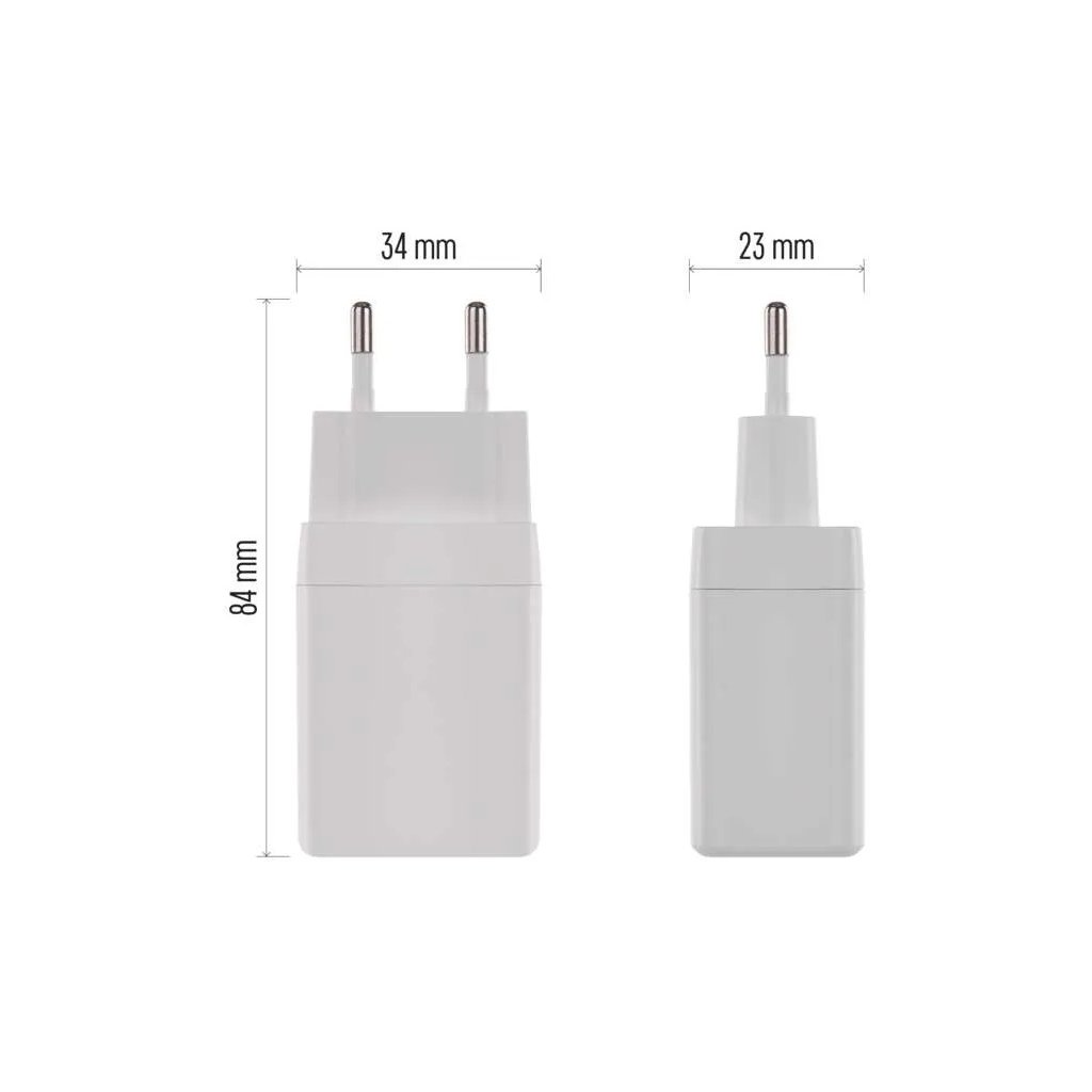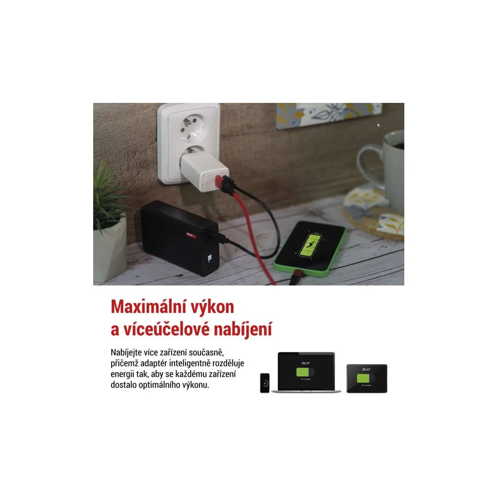 Výkonný univerzální síťový adaptér USB s výkonem až 45W a dvěma výstupy - 1x USB-A (klasický), 1x USB-C. Adaptér zajistí rychlé a spolehlivé nabíjení a napájení telefonů, tabletů, notebooků, USB nabíječů a dalších zařízení. Tranzistory s Nitridem Galia poskytují vysokou účinnost při zachování kompaktních rozměrů. Automatické a efektivní rozdělení výkonu na jednotlivé výstupy dle požadavků připojených zařízení.