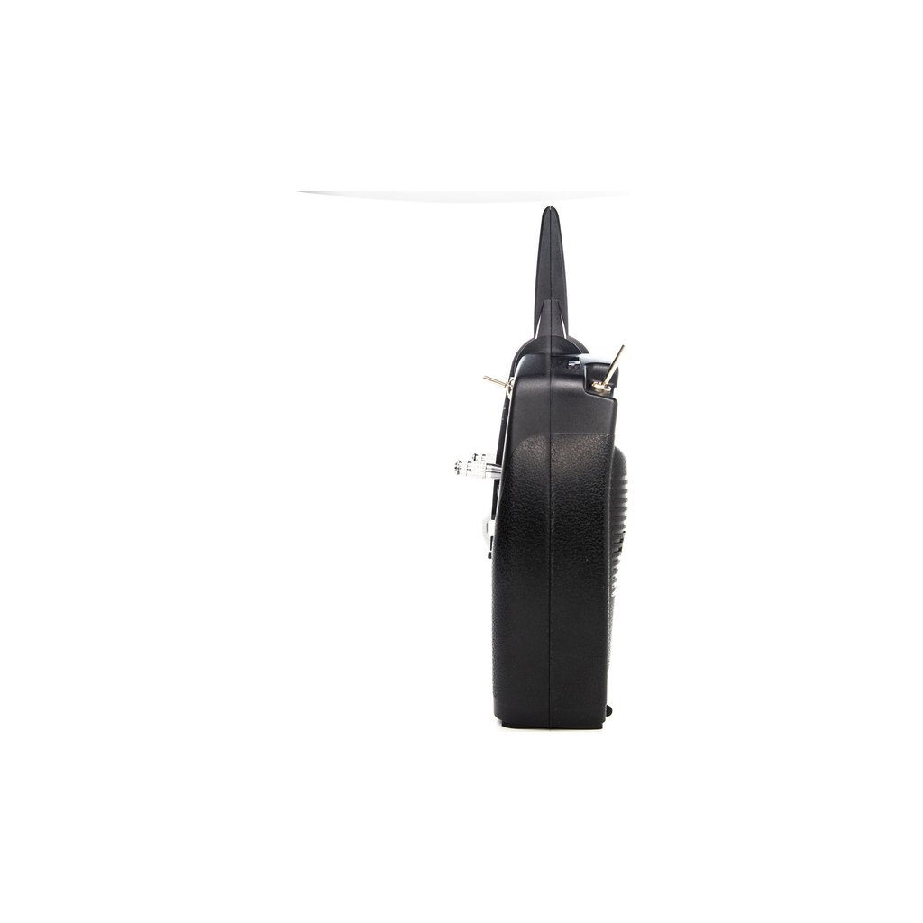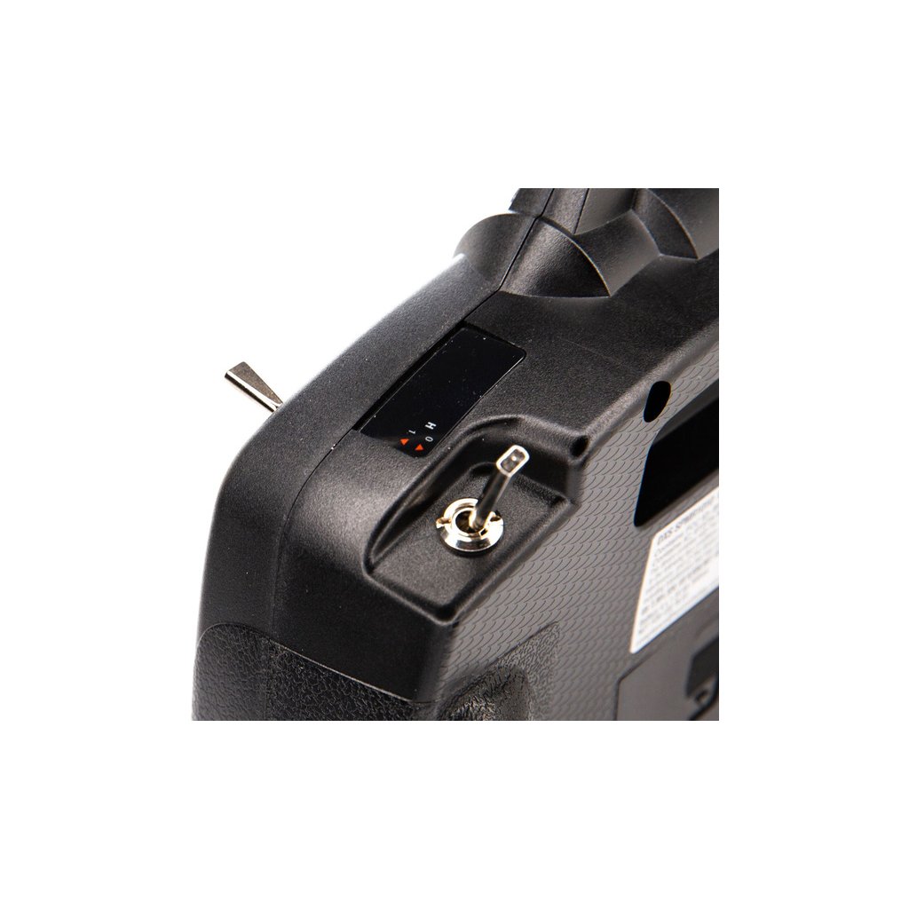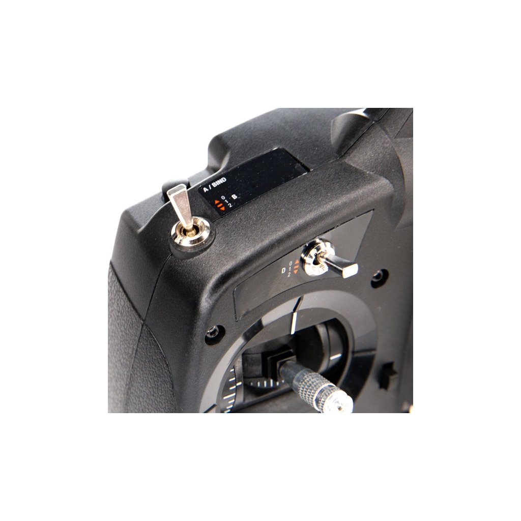 Rozložení hmotnosti, umístění a pozice přepínačů a umístění trimů byly optimalizovány pro pohodlné ovládání a držení vysílače. Součástí je integrovaná rukojeť a třmen na popruh vysílače.