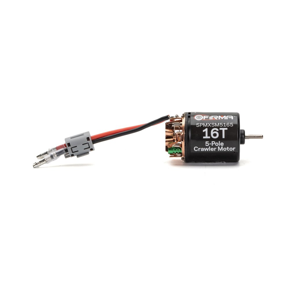 Stejnosměrný motor Spektrum Firma řady 540 s 16 závity, je díky svému 5 zubovému rotoru, vysokému točivému momentu a hladkému chodu v nízkých otáčkách ideální pro RC modely aut typu crawler a expediční. Motor má precizní konstrukci se zapouzdřenými kuličkovými ložisky a vyměnitelnými kartáčky. Kartáčky jsou již z výroby tvarované. Pro náročné uživatele je možnost změnit nastavení časování motoru. Motor doporučujeme používat s 40A (a více) regulátorem.