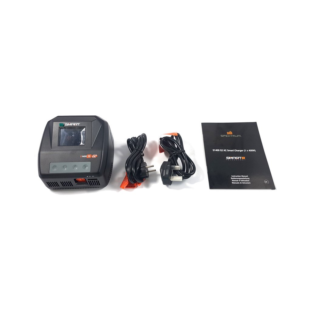 V balení je nabíječ Spektrum Smart S1400 1x400W AC, síťový kabel, návod v češtině, manuál EN, DE, FR, IT.