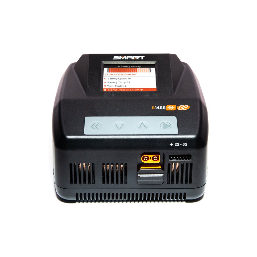 Díky nabíječi S1400 Smart G2 AC je nabíjení baterie jednodušší, než kdykoli předtím. Jeho funkce automatického nabíjení rozpozná parametry vaší Spektrum SMART baterie, jako je typ článků a rychlost nabíjení, po připojení nabíjecího kabelu automaticky zahájí bezpečné nabíjení. Čas zobrazený na displeji nabíječe odpočítává čas do úplného nabití baterie Smart a její připravenosti k použití.