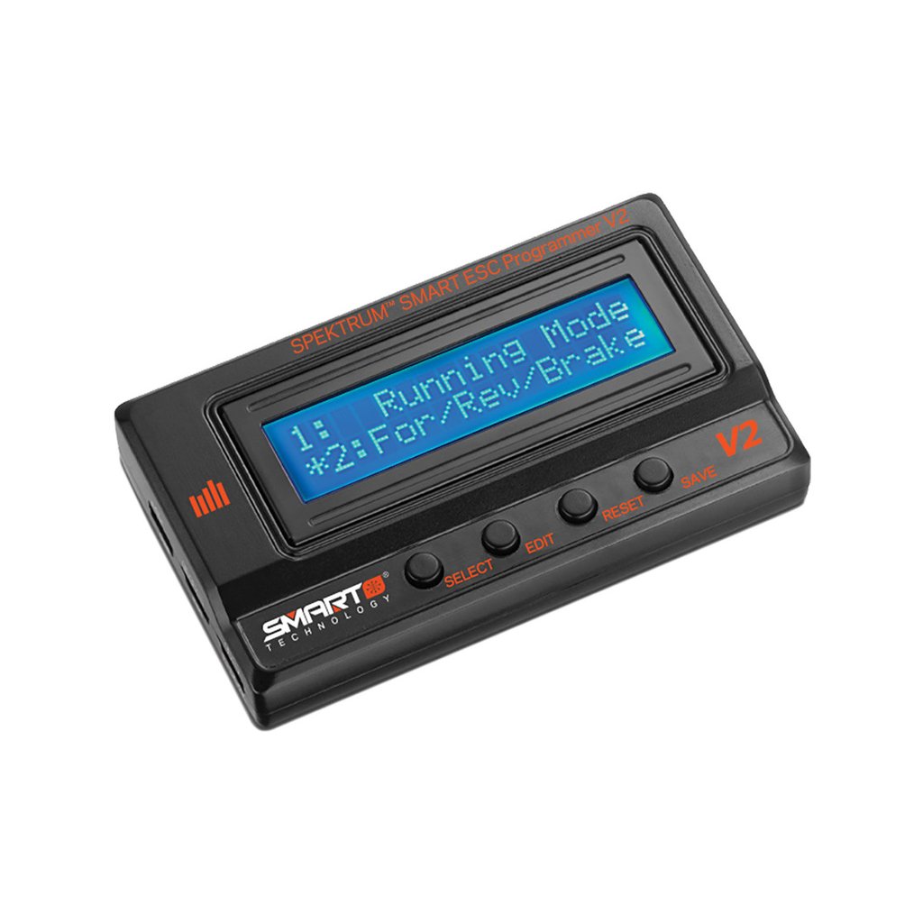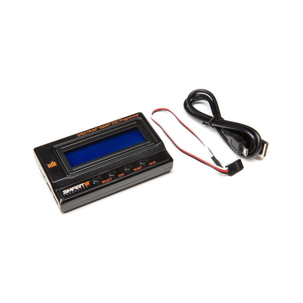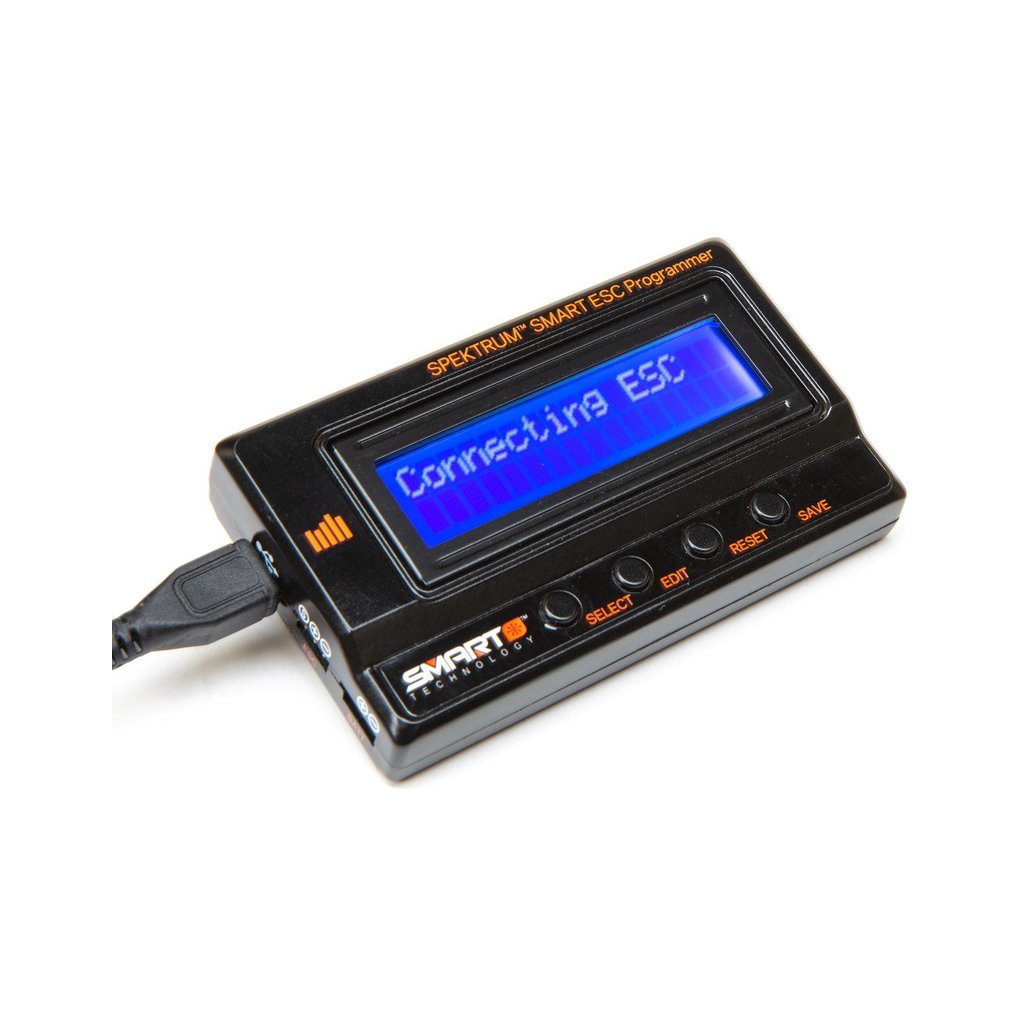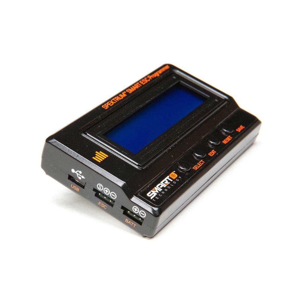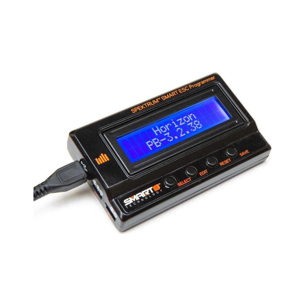 Programovací karta V2 pro Smart regulátory Spektrum Avian a Spektrum Firma. Umožňuje snadno nastavit veškeré parametry regulátorů. Po připojení programátoru k počítači pomocí přiloženého kabelu USB kabelu, lze provést aktualizaci firmware. Aktuální aplikace pro PC je k dipozici ke stažení zde.