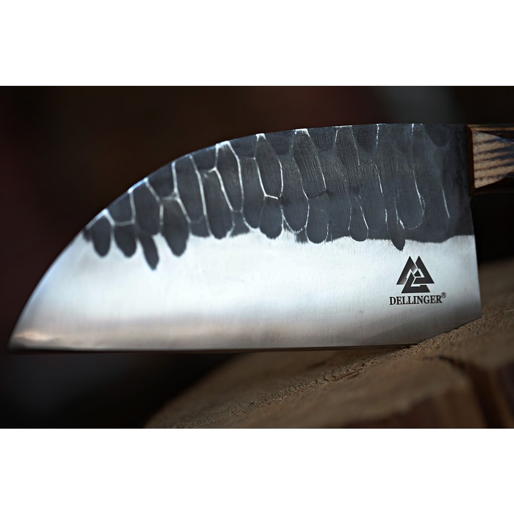 S tímto fantastickým nožem Skogskock zvládnete téměř vše. Sekání, krájení, vykosťování, čištění masa a zeleniny - nic pro tento nůž není problém. Nůž je ručně kovaný a zpracovaný z oceli D2. Po přesném a pečlivém vytvrzení, temperování a žíhání dosahuje tvrdosti HRC 60-62. Jeho ostří jen tak někdo nebo něco nepoškodí. Nůž Dellinger ALMALIFE má 5 mm silné houževnaté ostří, které vám bude sloužit po mnoho let. Rukojeť nože je vyrobena z olivového dřeva.