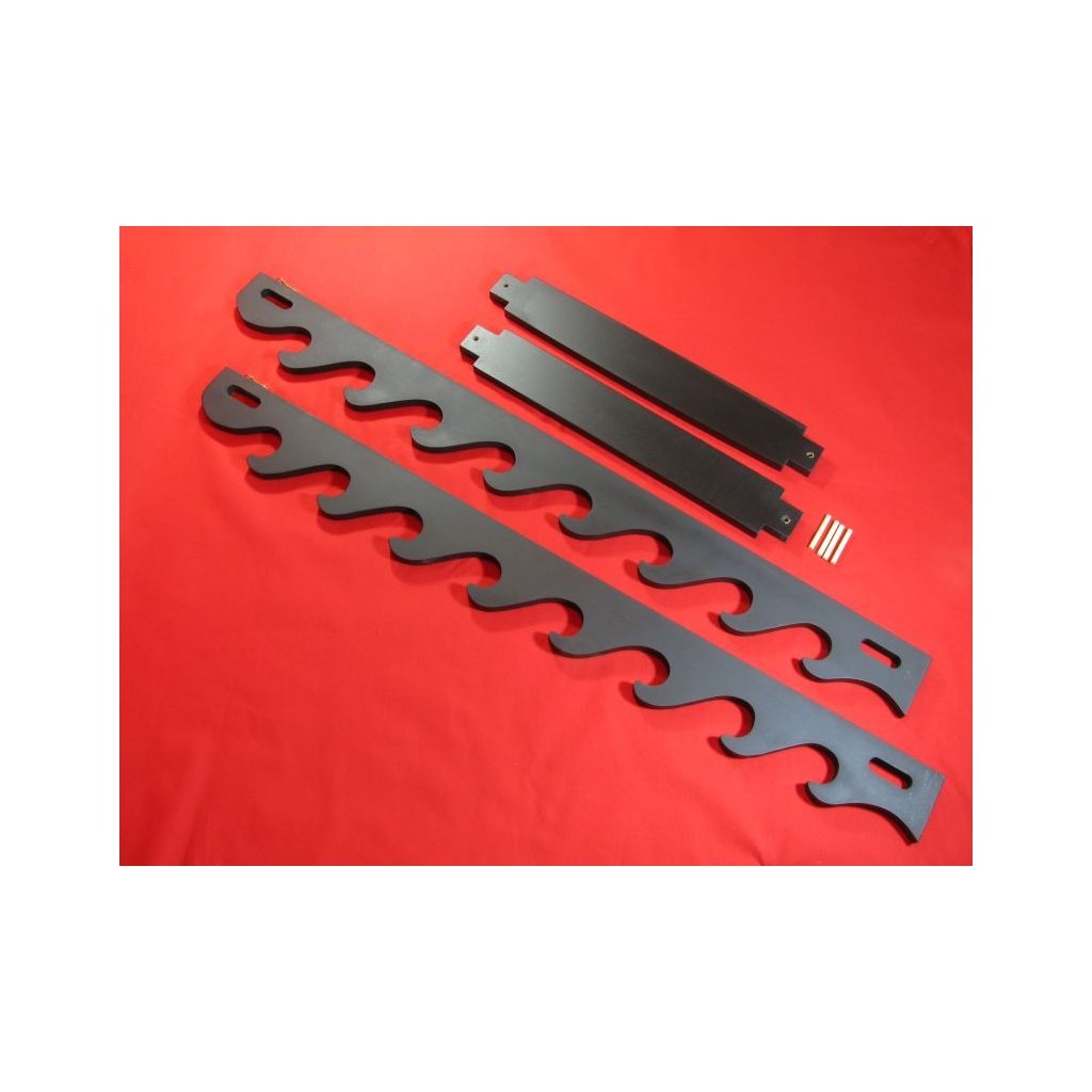 Prezentujte svou sbírku mečů stylově a přehledně. Tento osmipatrový nástěnný stojan je navržen pro milovníky japonského umění, kteří potřebují efektivně a vkusně uložit své katany, wakizashi nebo tanto. Výstavní závěsný stojan je vyroben z kvalitního dřevěného masivu v decentním černém matném provedení, které nechá vyniknout barvám a detailům vašich mečů.