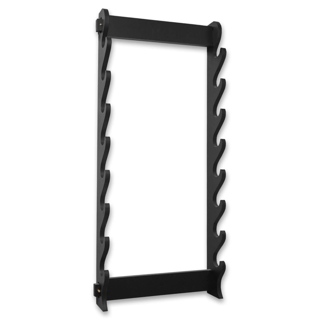 Černý dřevěný nástěnný stojan na 8 katan a mečů