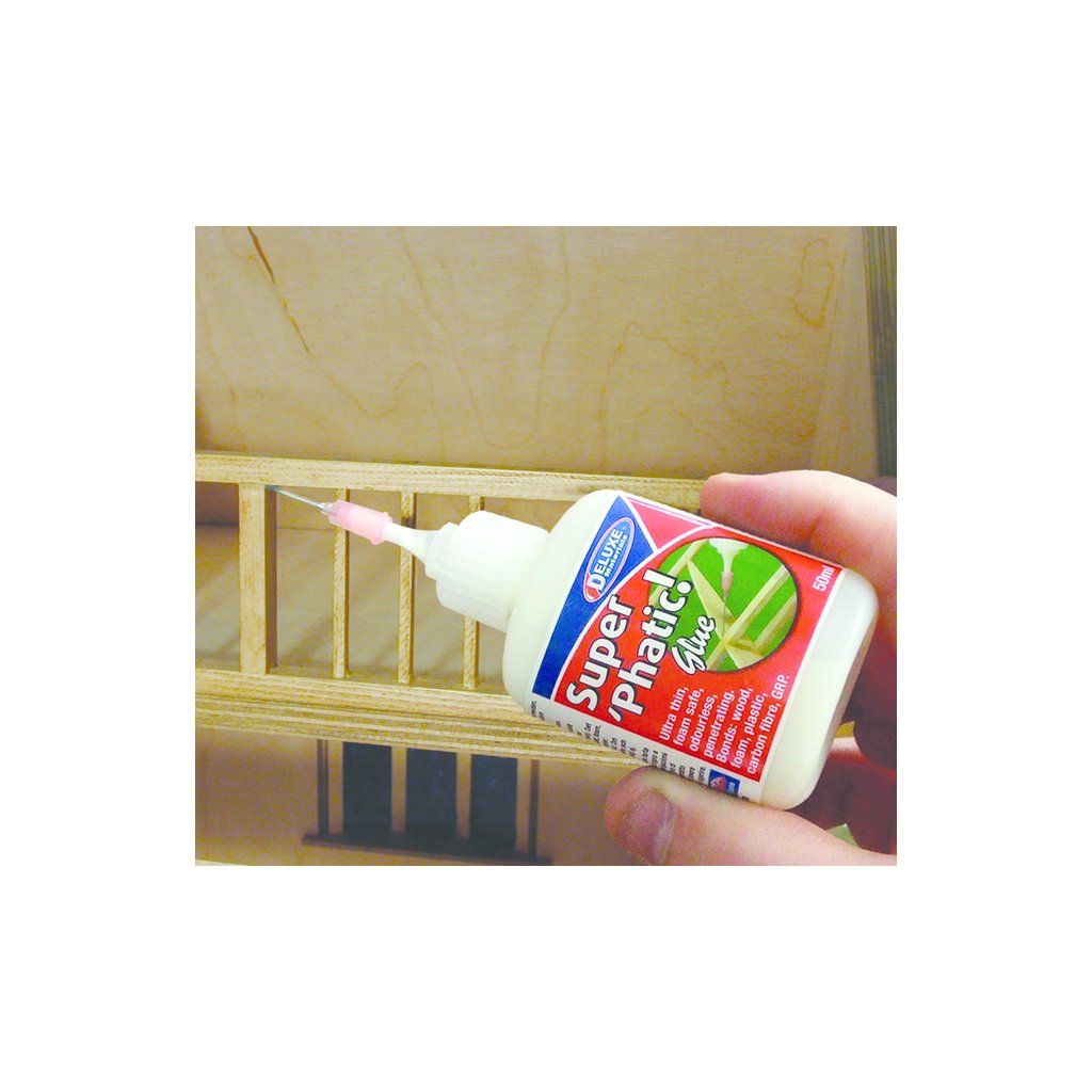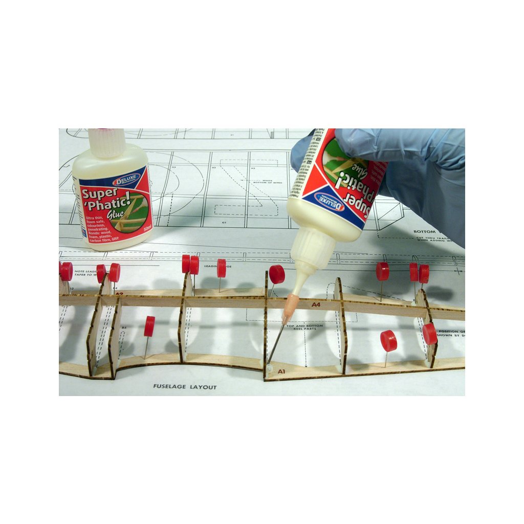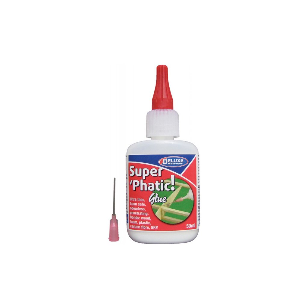 Super Phatic je univerzální řídké lepidlo, které může být alternativou k řídkým kyanoakrylátovým lepidlům. Je netoxické, lepí bez zápachu, nezaschlé lepidlo lze smýt vodou. Velmi dobře se vsakuje do balsy a dřeva. Lepí balsu, dřevo, plastové panty, pěnové materiály a kompozity. Po vytvrzení je lepidlo vodovzdorné.