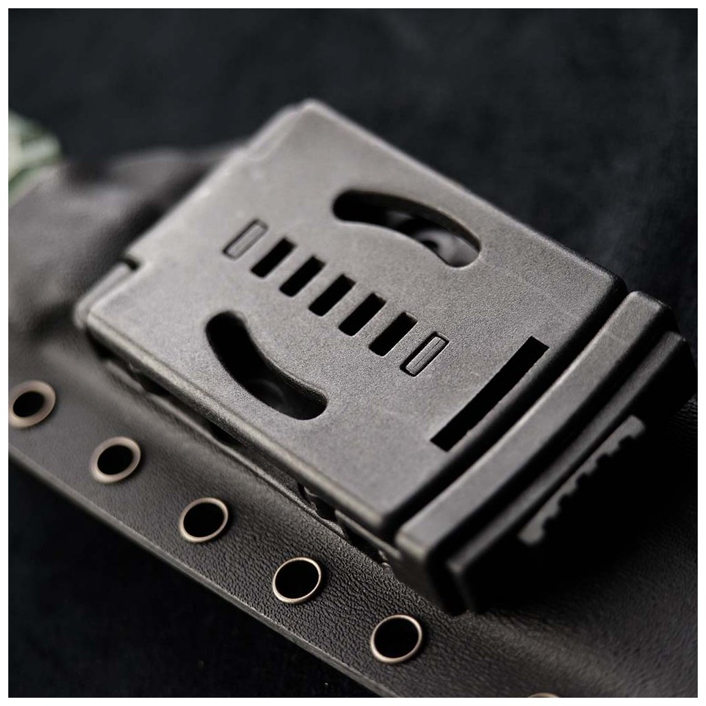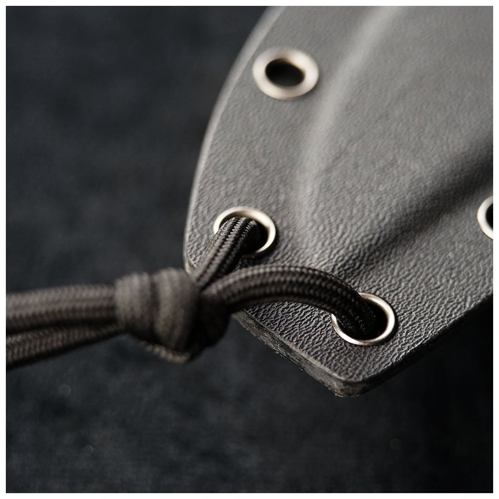Součástí balení je odolné kydexové pouzdro s univerzálním systémem uchycení. Pouzdro nůž pevně fixuje a umožňuje jeho bezpečné nošení na opasku nebo expedičním batohu.