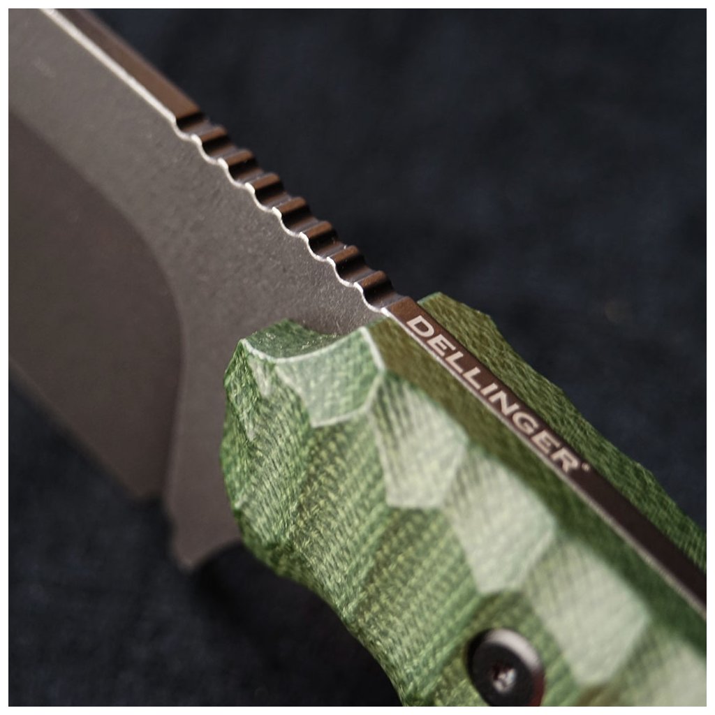 Dellinger Protector je profesionální outdoorový nůž, který představuje dokonalou symbiózu extrémní odolnosti a funkčního designu. Čepel je vyrobena z vysoce výkonné nástrojové oceli DC53, která svými vlastnostmi překonává běžné standardy v tvrdosti i mechanické odolnosti. Povrchová úprava black coating nejen chrání čepel před vnějšími vlivy, ale také minimalizuje nežádoucí odlesky, což oceníte při práci v ostrém slunci.