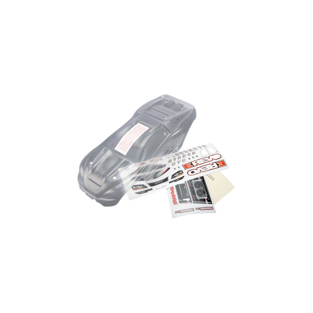 Traxxas karosérie čirá, samolepky: E-Revo 1:16