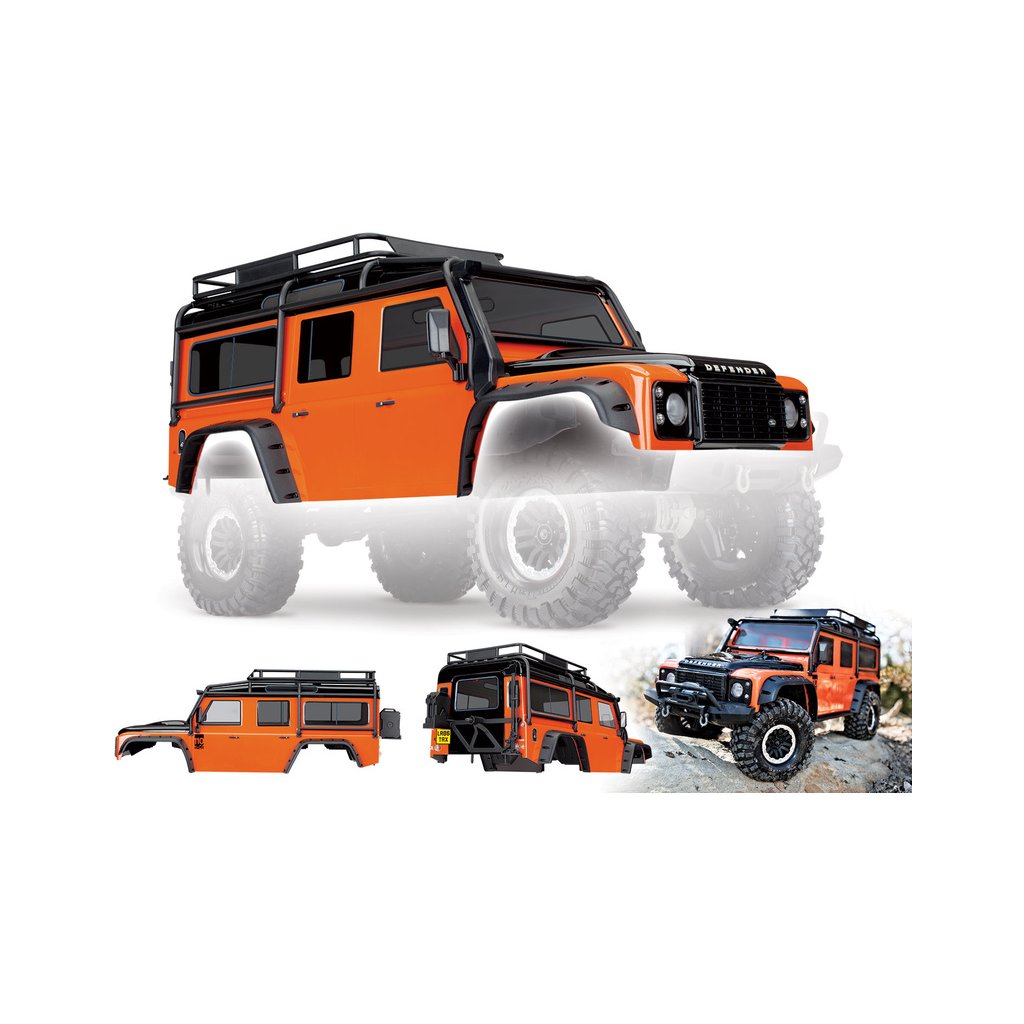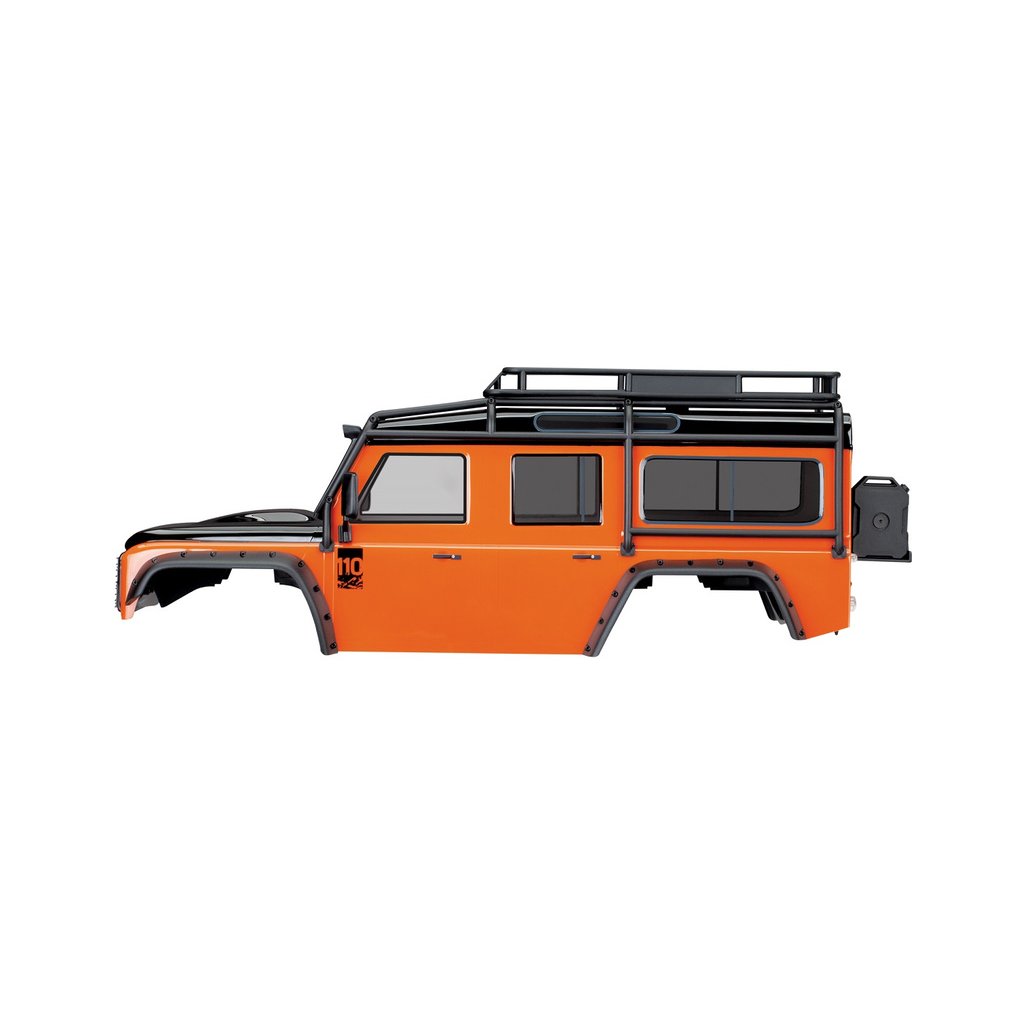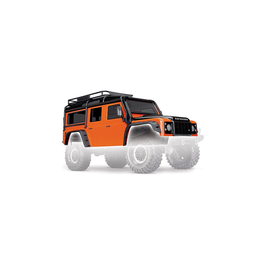 Kompletní karosérie pro RC model auta Traxxas Land Rover Defender Adventure. Oranžová karoserie Adventure s černou kapotou a doplňky, čirá skla (vzadu tónovaná), lemy blatníků, šnorch, rezervní kolo a nádrže. Tato speciální edice Adventure byla vydaná k výročí ukončení výroby původního vozu Land Rover Defender. Karoserie je kompletně sestavená, nabarvená a připravená na šasi TRX-4 s rozvorem 324 mm.