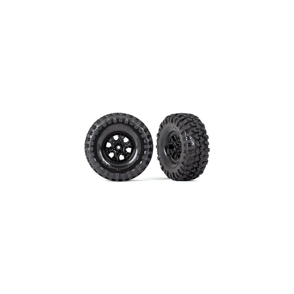 Kompletní univerzální kola pro RC modely aut TRX-4 / TRX-6. Černé disky Wildtrack Ford Bronco 2021 s pneumatikami Canyon Trail (2 ks v balení).