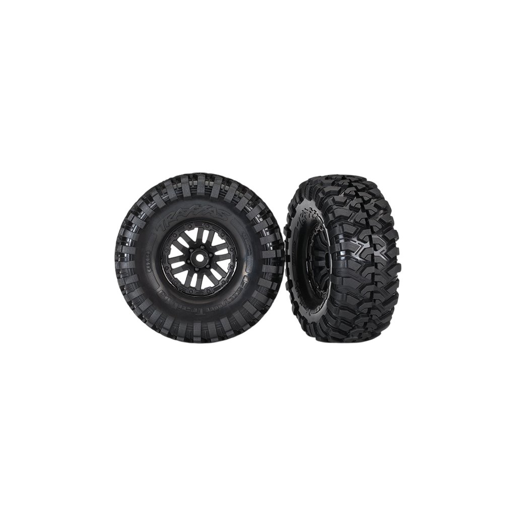 Kompletní kola. Černé disky s pneumatikami Canyon Trail pro RC modely aut TRX v měřítku 1:10 (2 ks v balení).