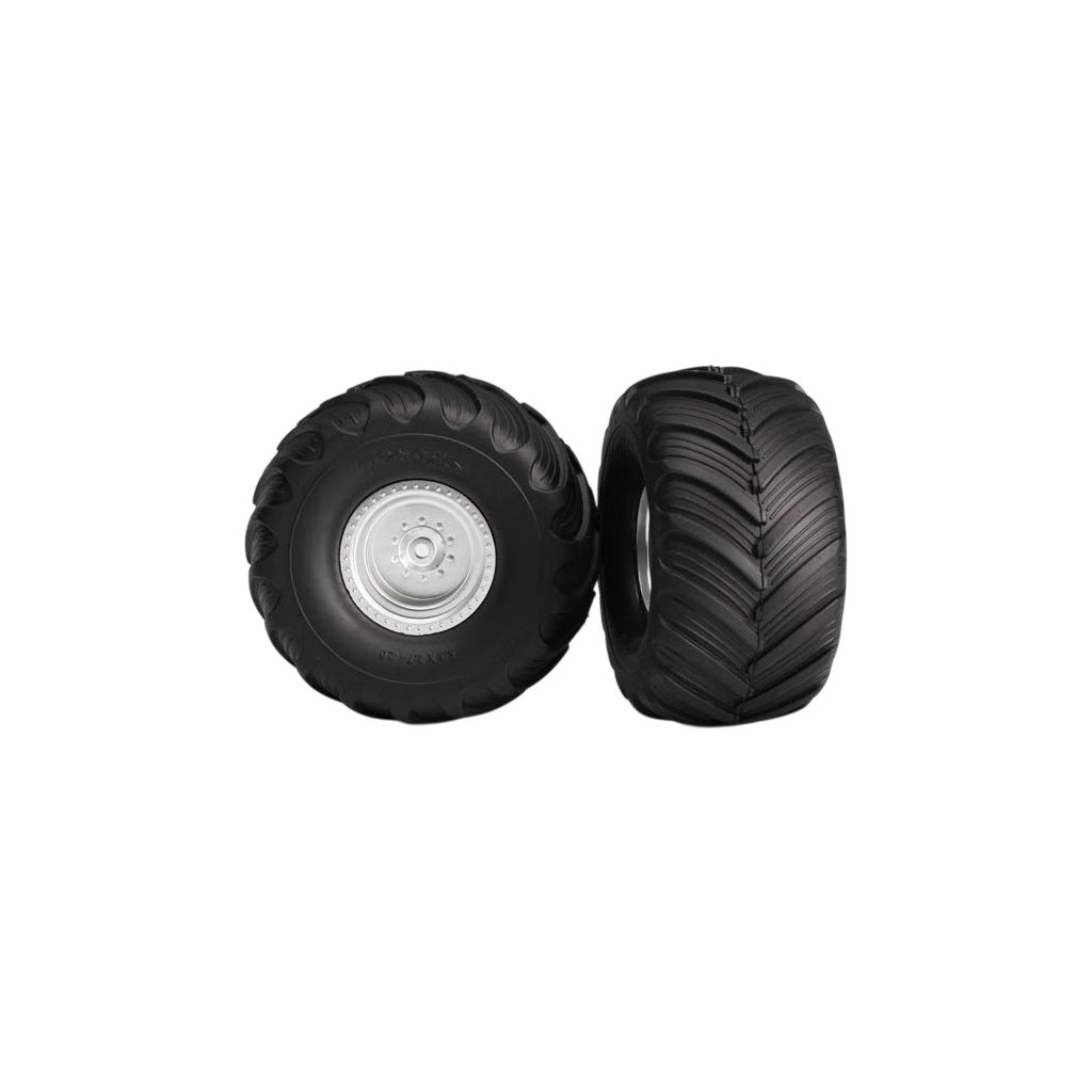 Kompletní přední kola Traxxas Terra Groove pro RC modely aut. Disk v provedení Saténový chrom, pneumatiky Terra Groove.