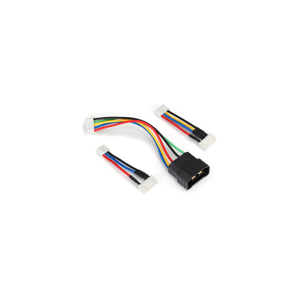 Obsahem balení je konverzní adaptér Traxxas iD konektoru dvou, tří nebo 4 čl. LiPo akumulátorů a dále redukce na tří a čtyř pinové JST‑XH konektory.