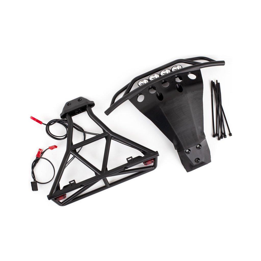 Balení obsahuje přední a zadní nárazník s LED osvětlením, Y-kabel pro zapojení do přijímače, montážní příslušenství. Návod CZ a manuál EN, DE, FR, SP.