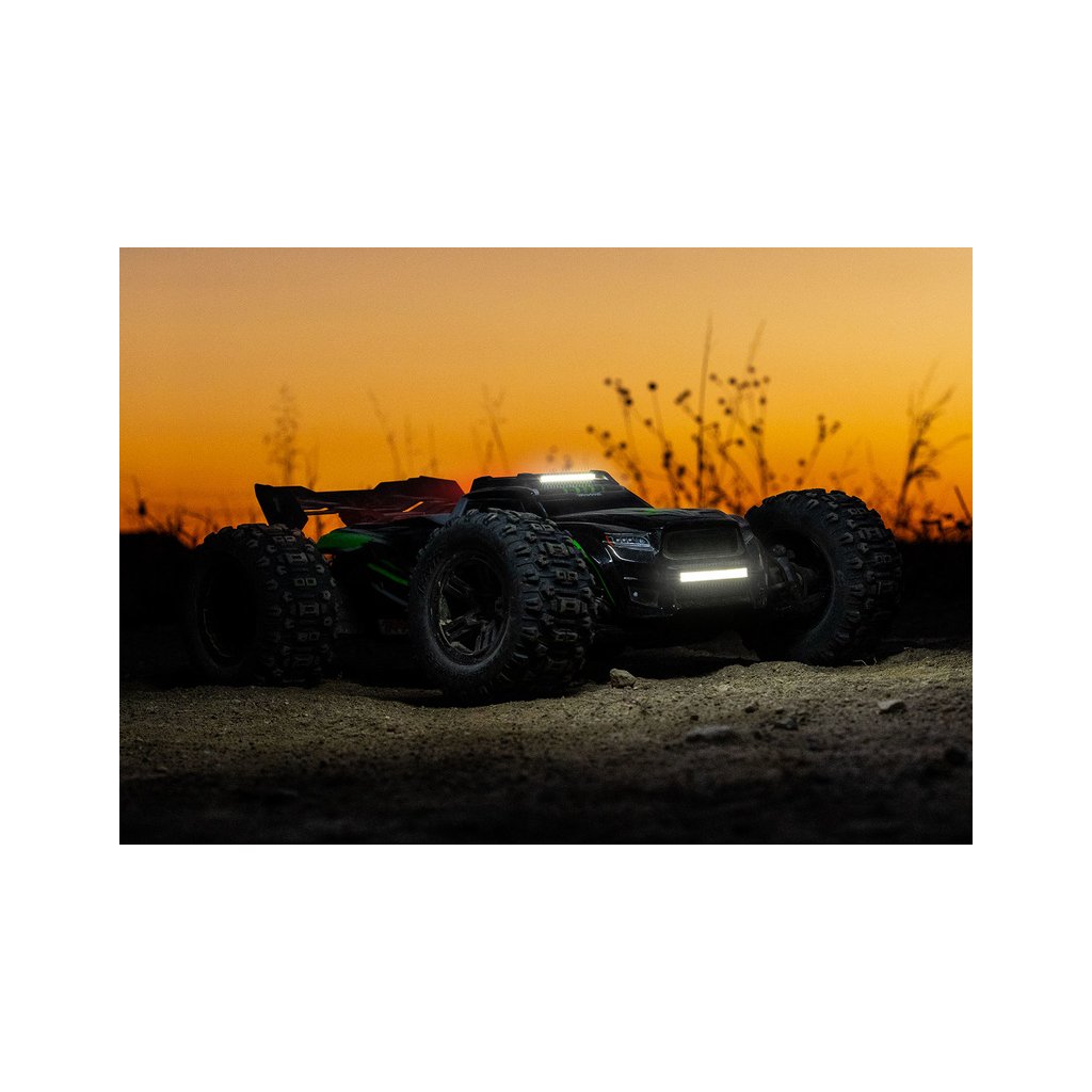 Zažijte ještě více zábavy a rozšiřte RC model auta Traxxas Sledge o kompletní sadu vysoce výkonného osvětlení. Přední bílé LED lišty, pod přední maskou a na střeše, dokonale nasvítí cestu před modelem. Zadní střešní LED lišta obsahuje funkční brzdová a zpátečková světla, která fungují jako na skutečném voze. Jednoduše připojte jednotlivé komponenty osvětlení do napájecí řídící jednotky a tu přes ochranný rozpojovací kabel do regulátoru. Vše je jednoduché, intuitivní a voděodolné*.