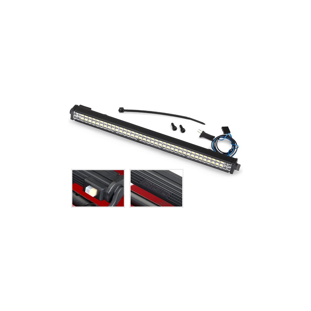 Střešní LED osvětlení pro RC model auta Traxxas TRX-4 Land Rover Defender 1:10. Střešní LED osvětlení se jednoduše nainstaluje na ochranný střešní rám. Jedinou úpravou by vytvoření malého otvoru v karosérii pro provlečení kabelů. Na liště je malý přepínač, kterým si můžete zvolit intenzitu svícení LED. Toto střešní LED osvětlení můžete rovněž nainstalovat i na jiné modely, upevnění ke karosérii je velmi snadné. K provozu potřebujete mít nainstalovaný Traxxas napájecí zdroj LED osvětlení (není součástí balení).