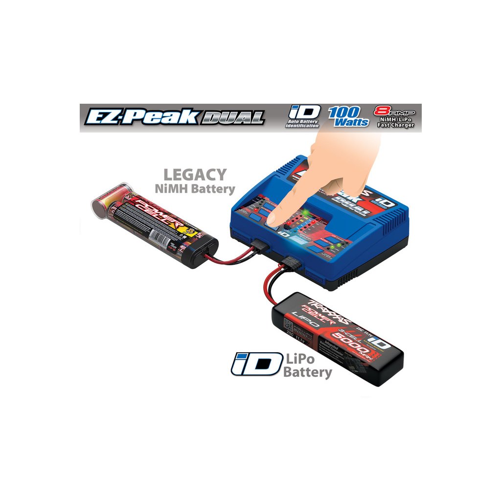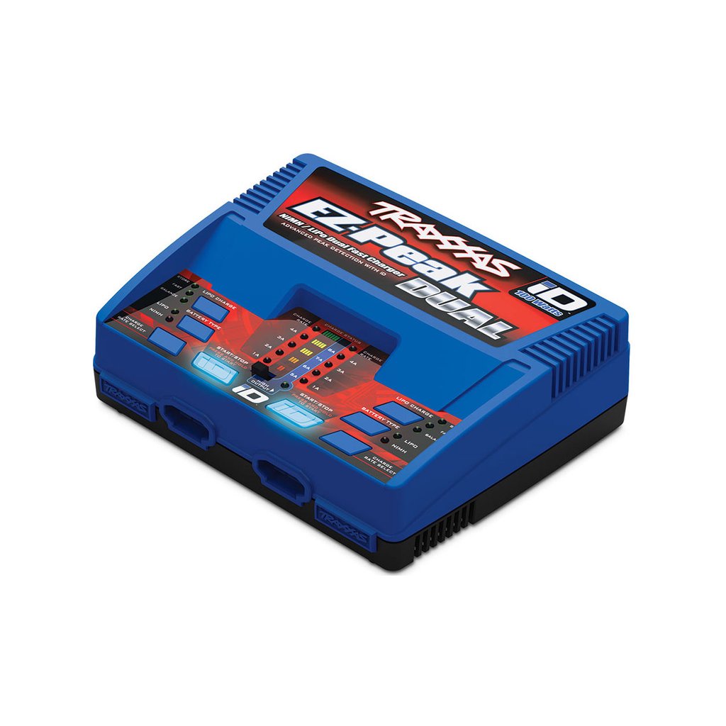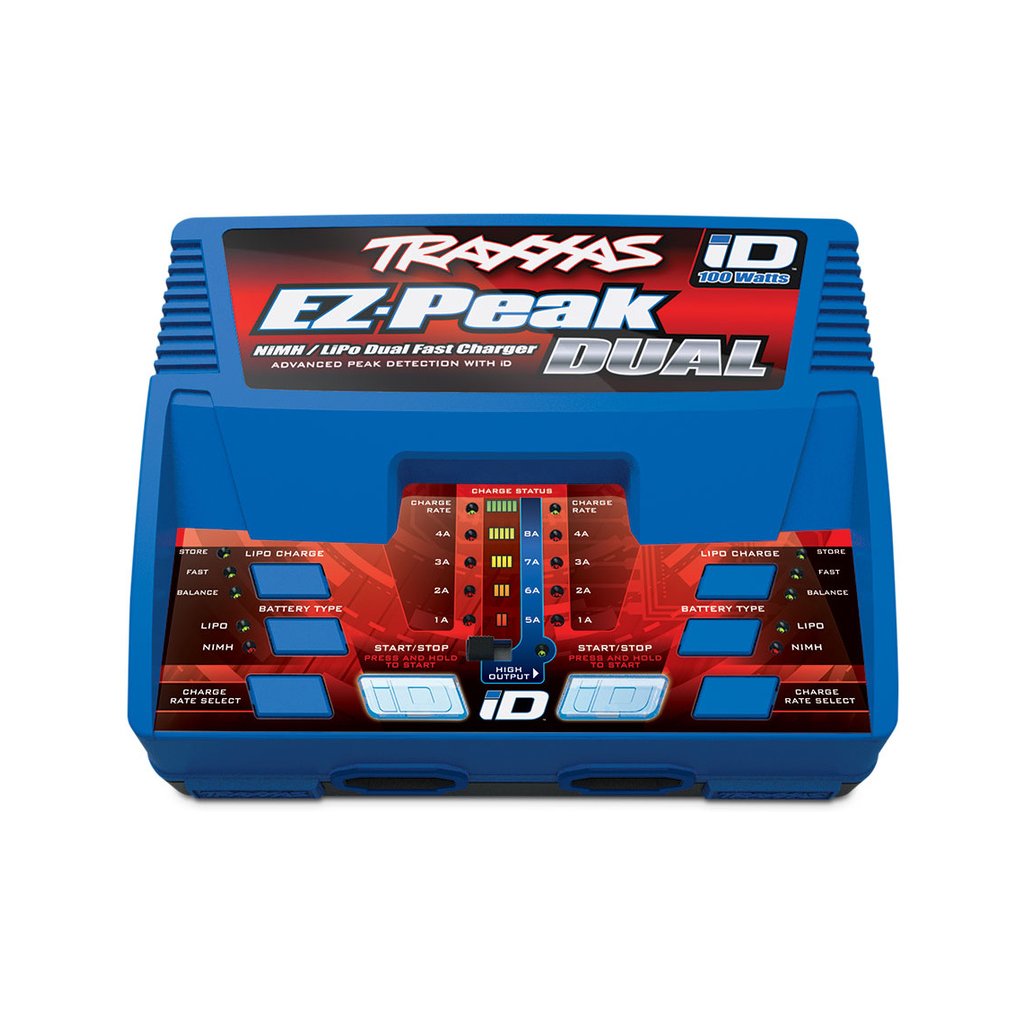 Nový systém Traxxas iD je nejjednodušší způsob, jak nabíjet baterie do RC modelů aut! Díky dnes zcela běžné technologii RFID nabíječ identifikuje připojený typ akumulátoru a sám nastaví parametry nabíjení. Pouze zapojíte Traxxas akumulátor s iD konektorem a nabíječ Traxxas EZ-Peak Plus udělá práci za Vás! Nabíjení akumulátorů je velmi jednoduché a zvládne jej opravdu každý. Díky duálnímu výstupu můžete nabíjet nezávisle až 2 akumulátory, nebo můžete výstupy spojit dohromady a nabíjet jeden akumulátor proudem až 8 A (režim fast charge)!