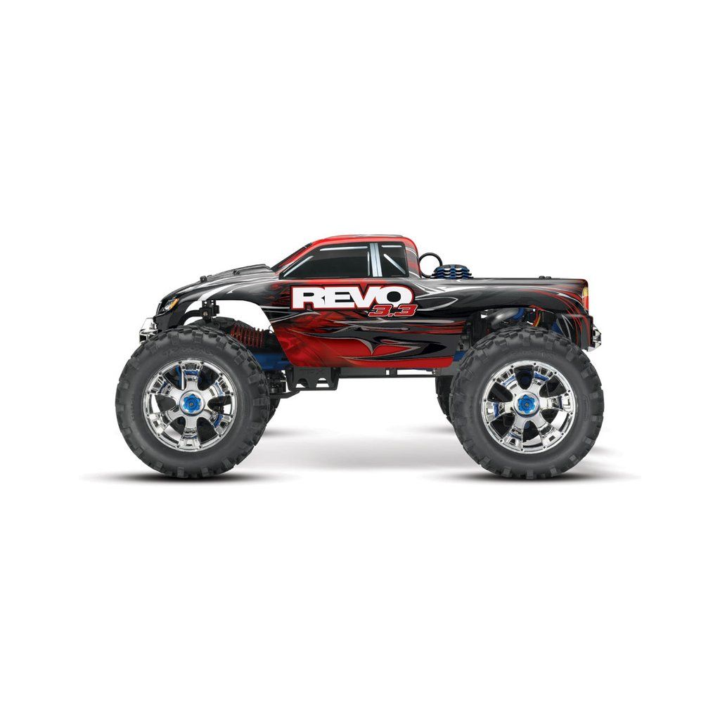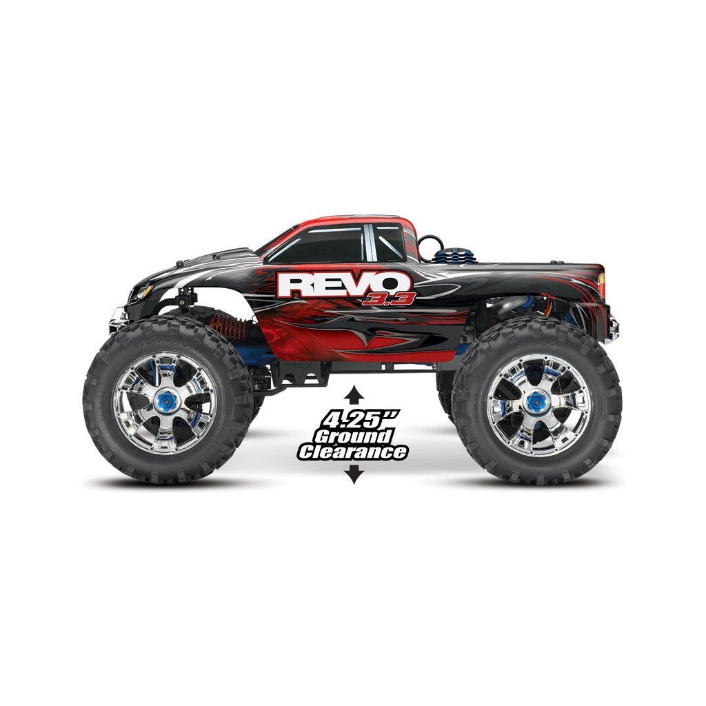 Traxxas Nitro Revo 3.3 je již 14-ti násobným vítězem magazímu RC Car Action! Nitro Revo je vybaveno výkonným závodním motorem TRX 3.3 s laděným výfukem, tuhý podvozek je ze 4 mm silného 6061-T6 modře eloxovaného hliníku. Obří pneumatiky o průměru 160 mm poskytují maximální přilnavost v terénu. Auto má velkou světlou výšku, díky které lze snadno projíždět i ty největší nerovnosti. Skvělé vedení na trati i díky náhonu 4WD a velkému rozvoru. Dosahuje rychlosti až 72 km/hod!